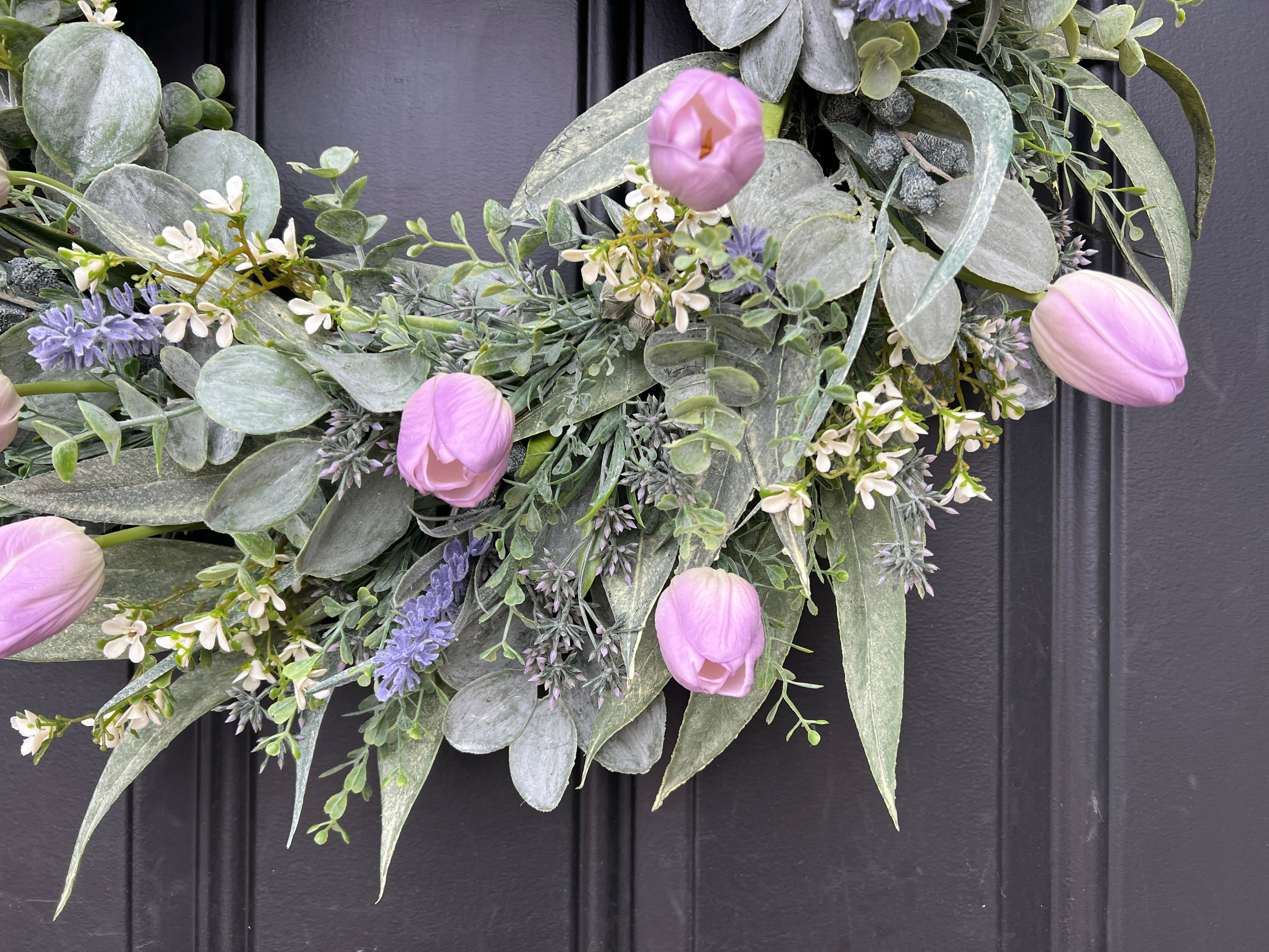 Purple Tulip Wreath for Front Door, Spring Tulips for Porch, Decor with Lavender