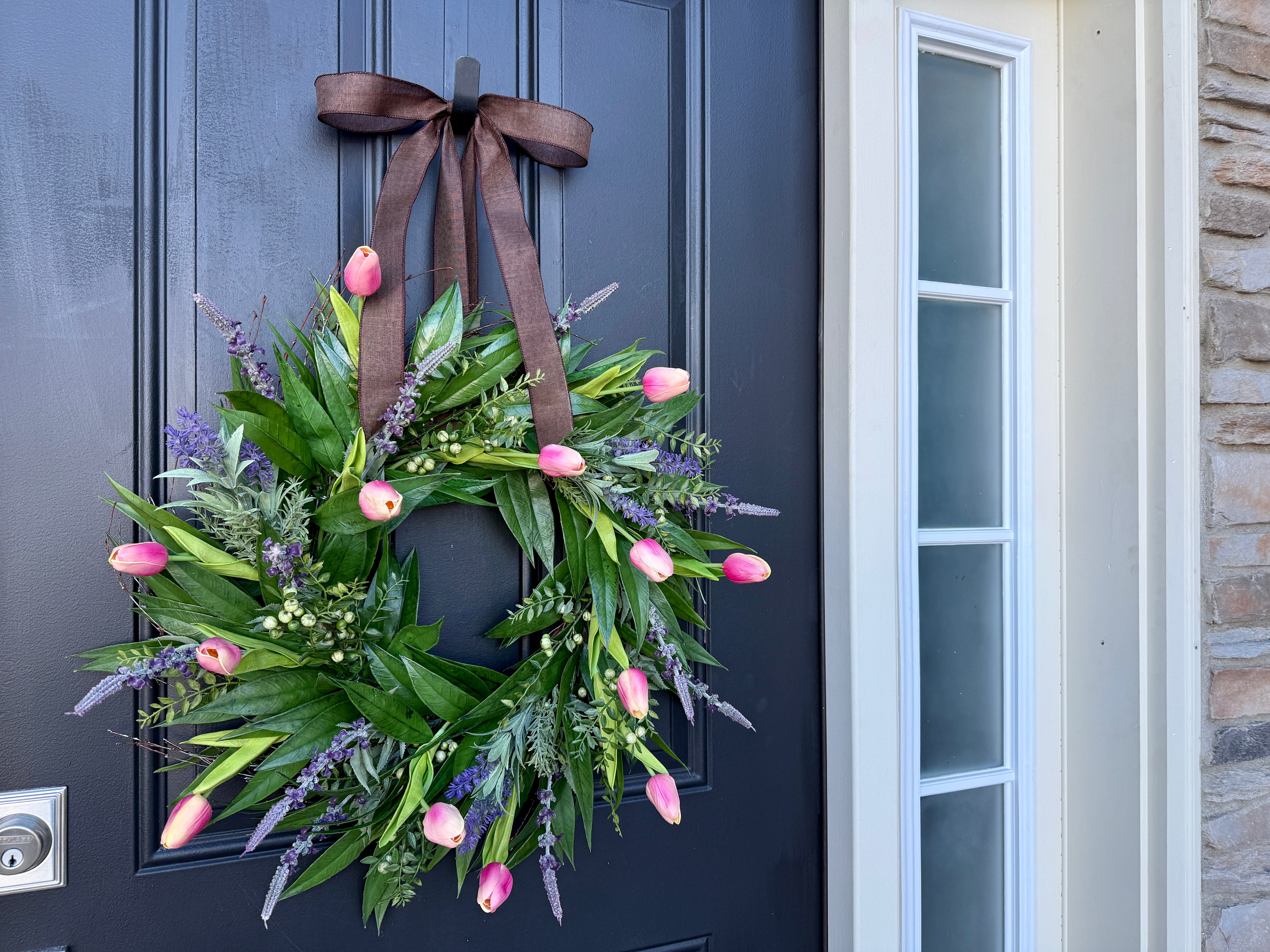 Add a natural touch to your home with a Spring and Summer Wreath featuring pink real touch tulips and lavender. Perfect for welcoming your guests to your home all spring and summer!