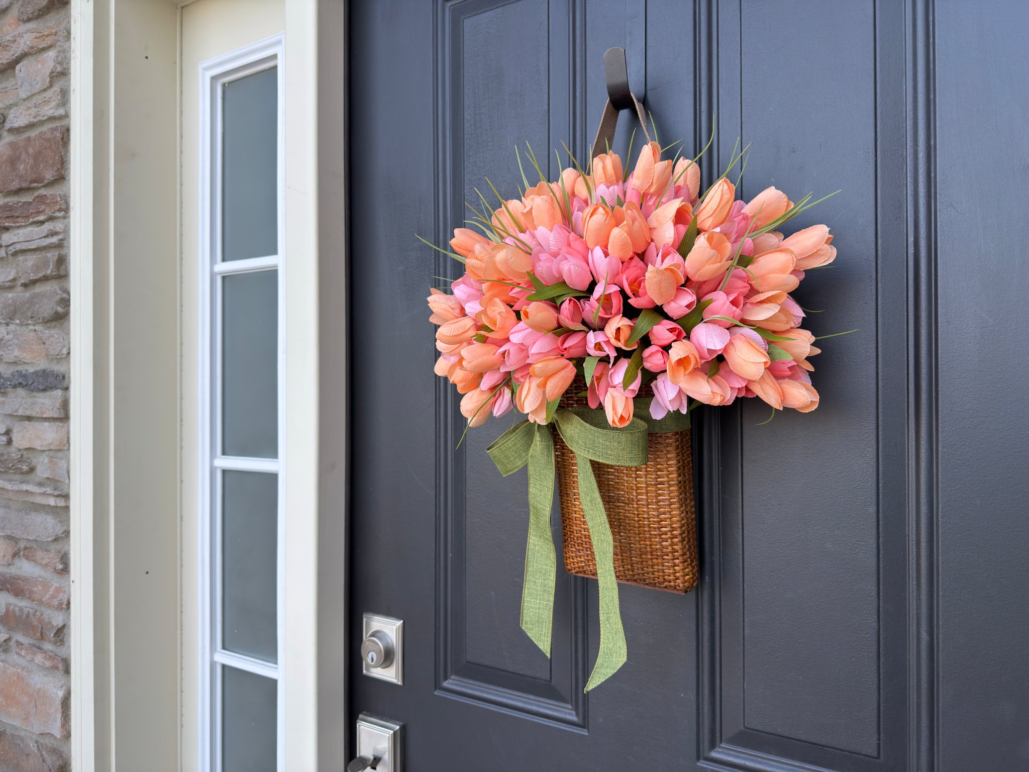 Celebrate Mother's Day with a Spring Basket full of vibrant pink tulips. A charming gift idea that brings a touch of fresh, seasonal beauty to any occasion. Perfect for gifting or home decor, this stunning arrangement offers a timeless floral touch.