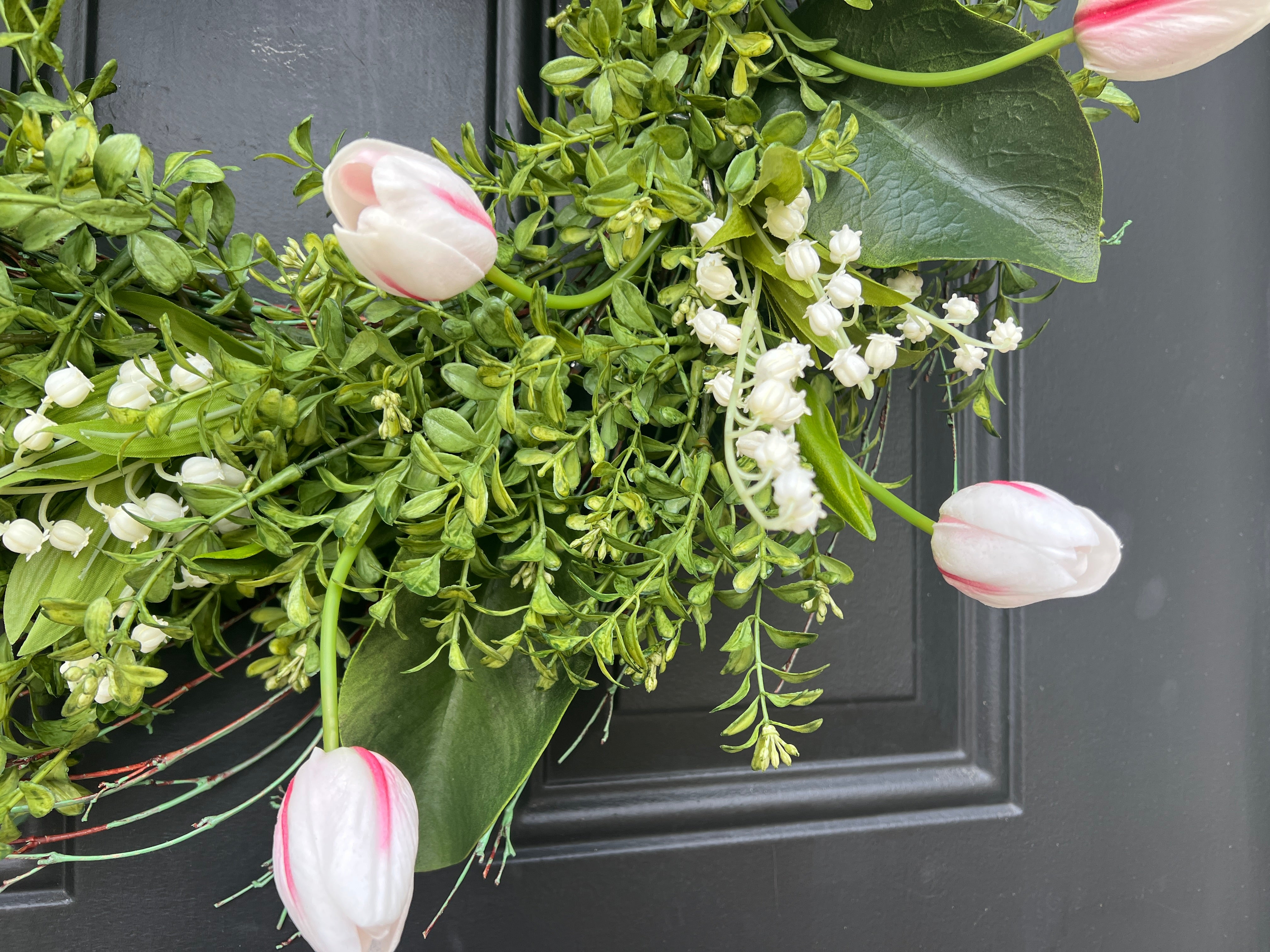 • Spring Boxwood Wreath - Boxwood, Magnolia and Tulips Wreath
