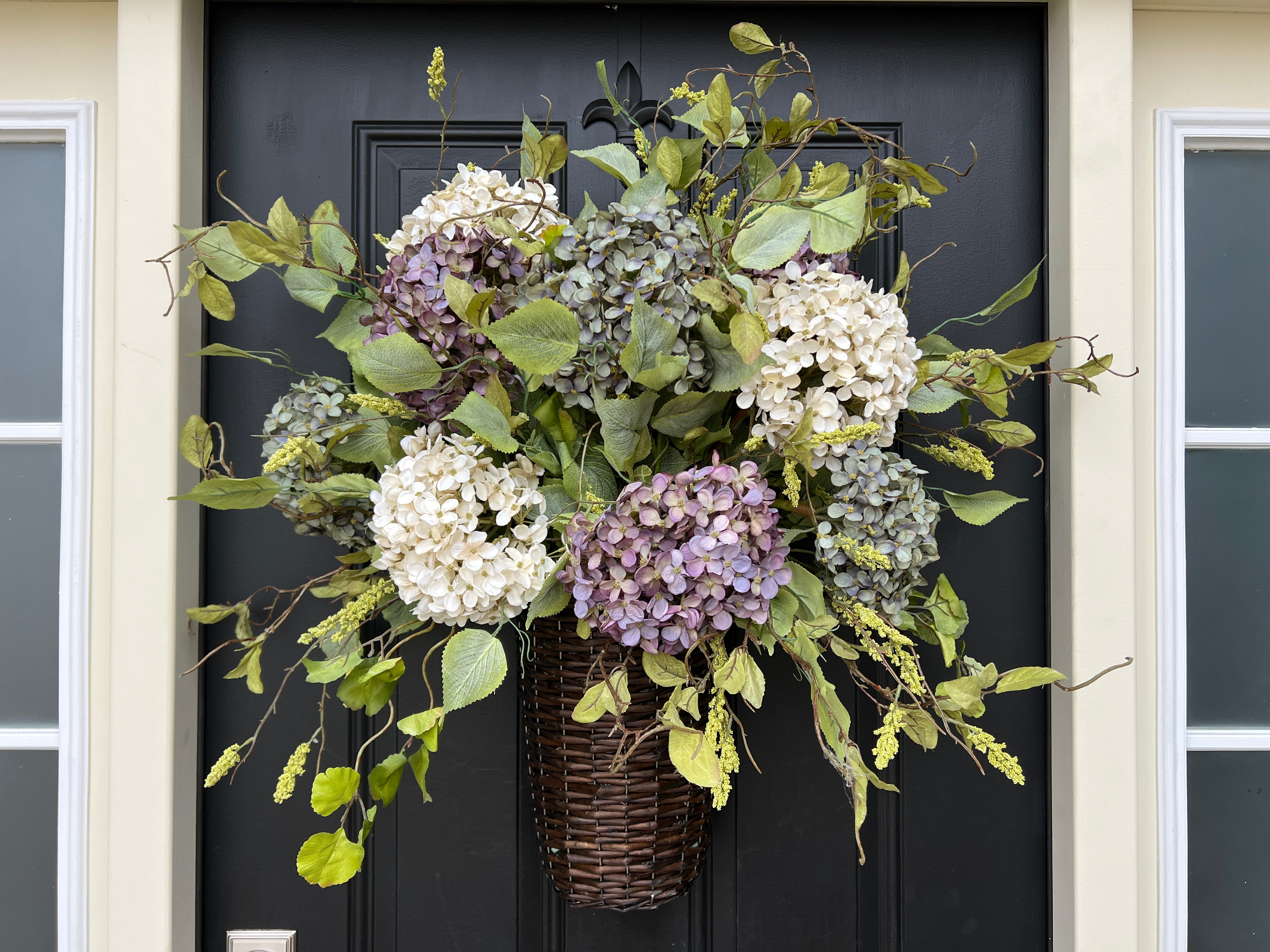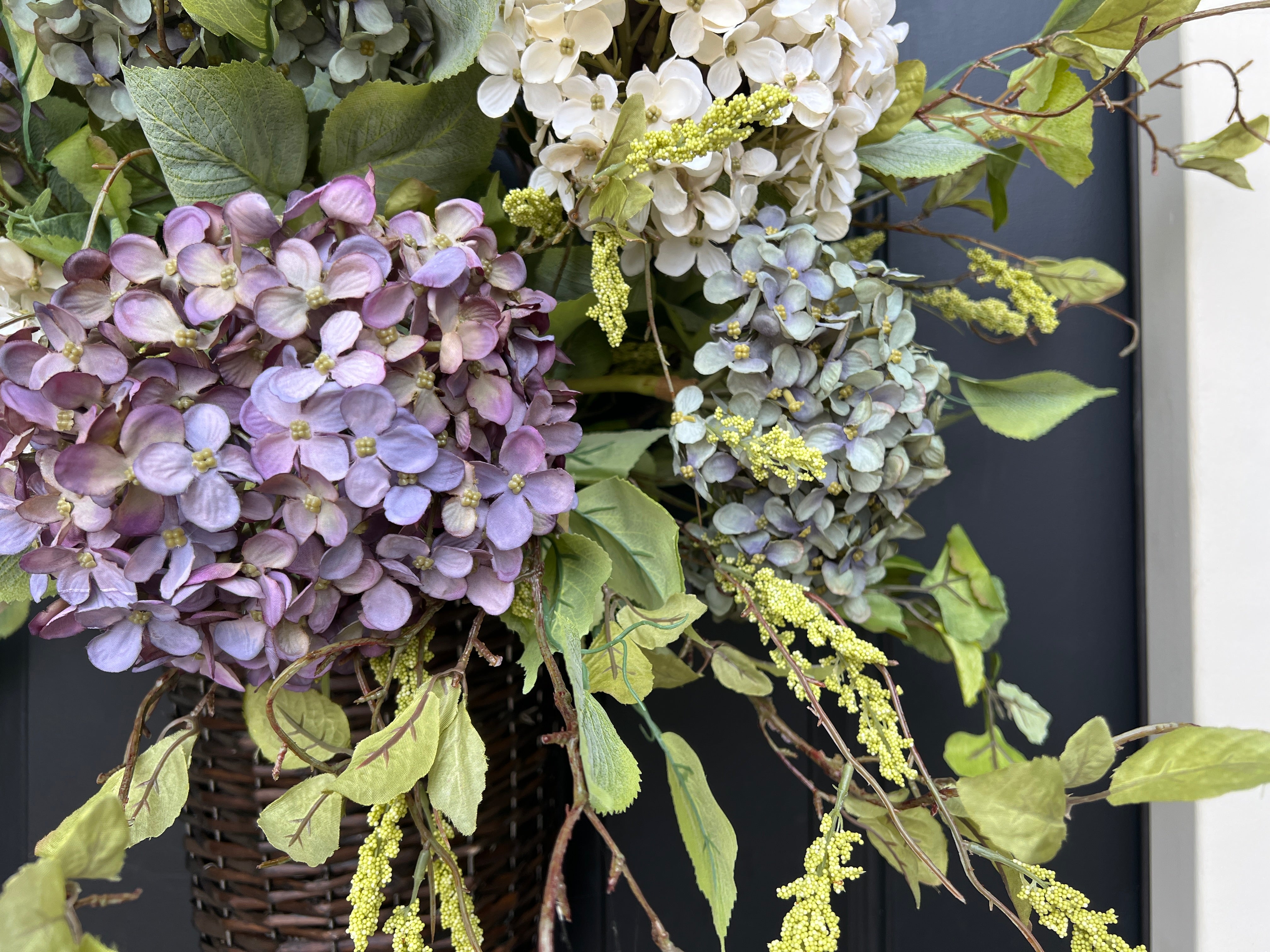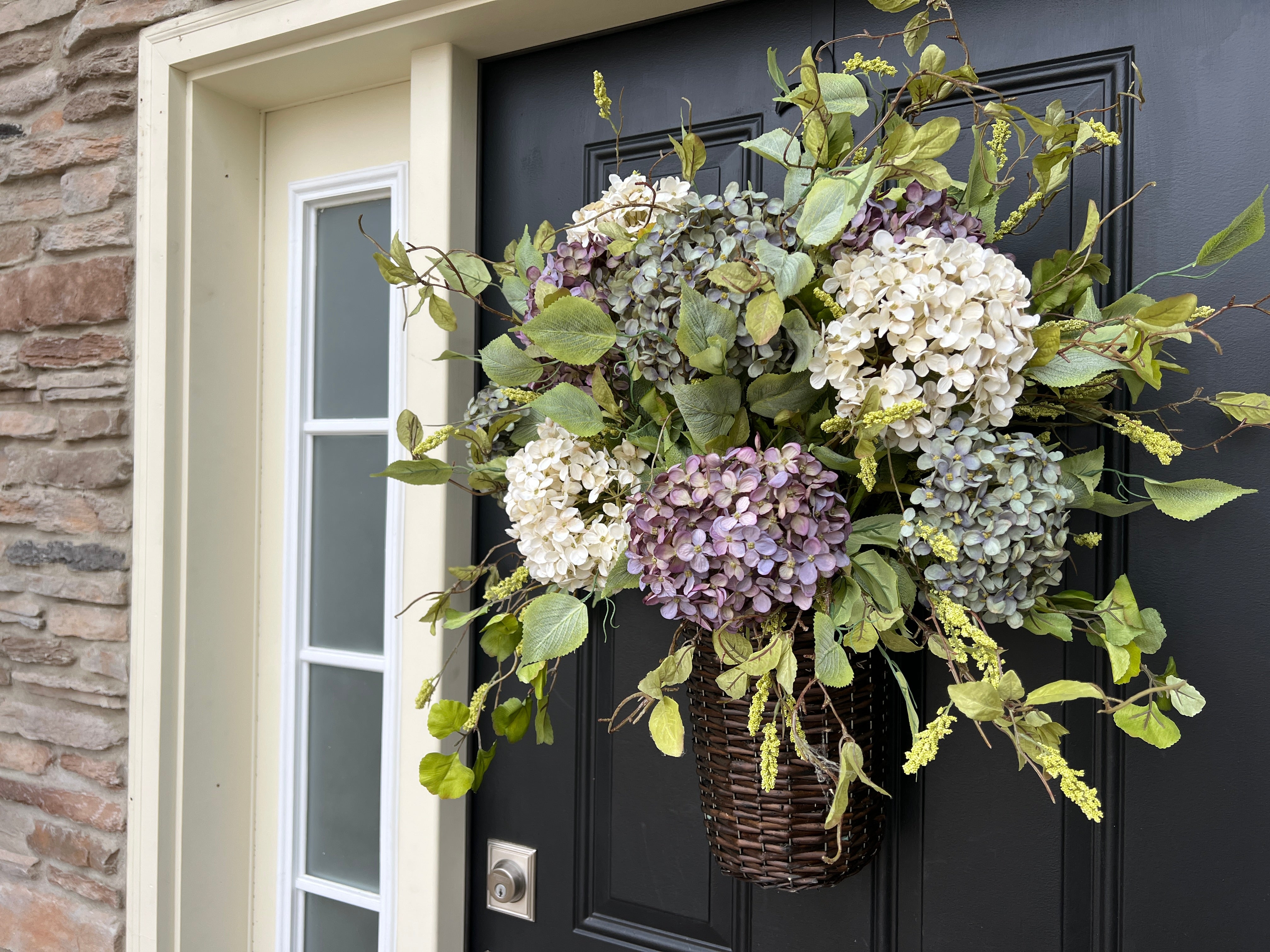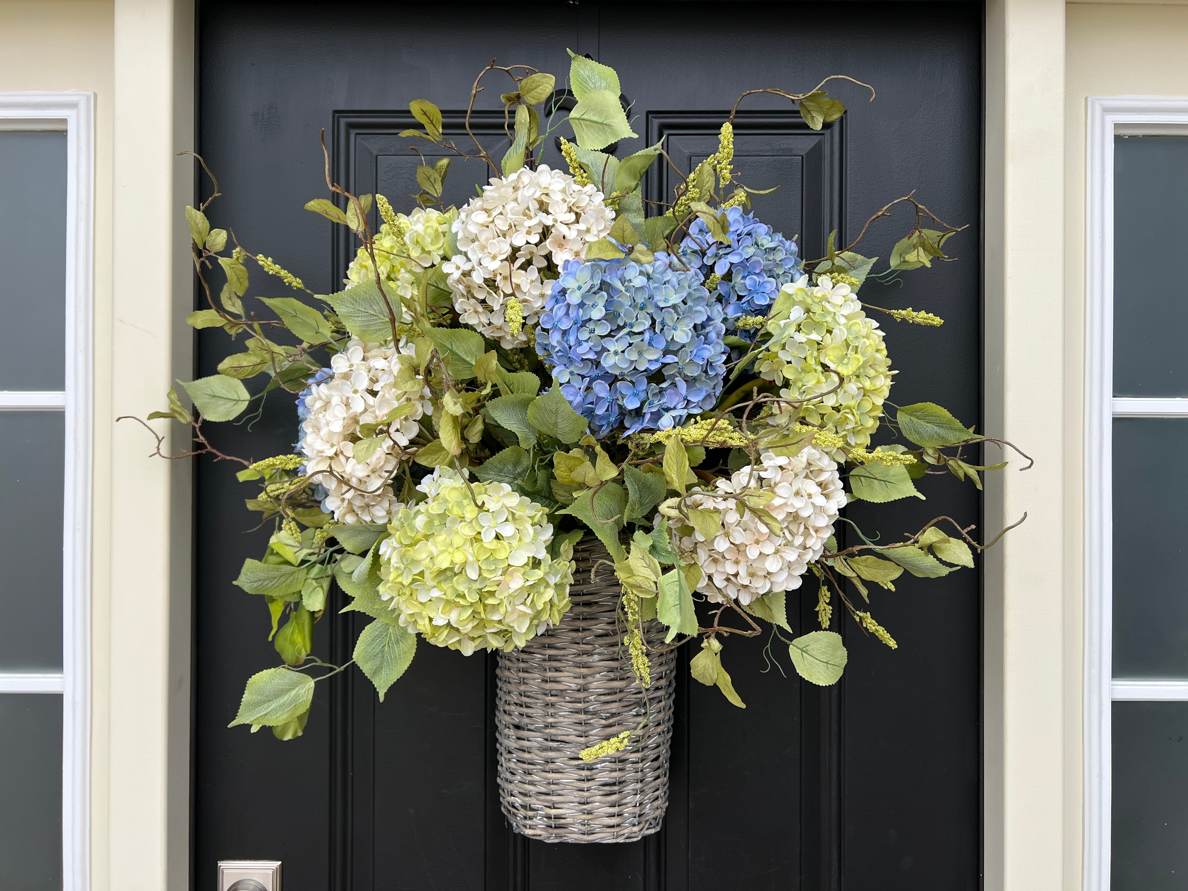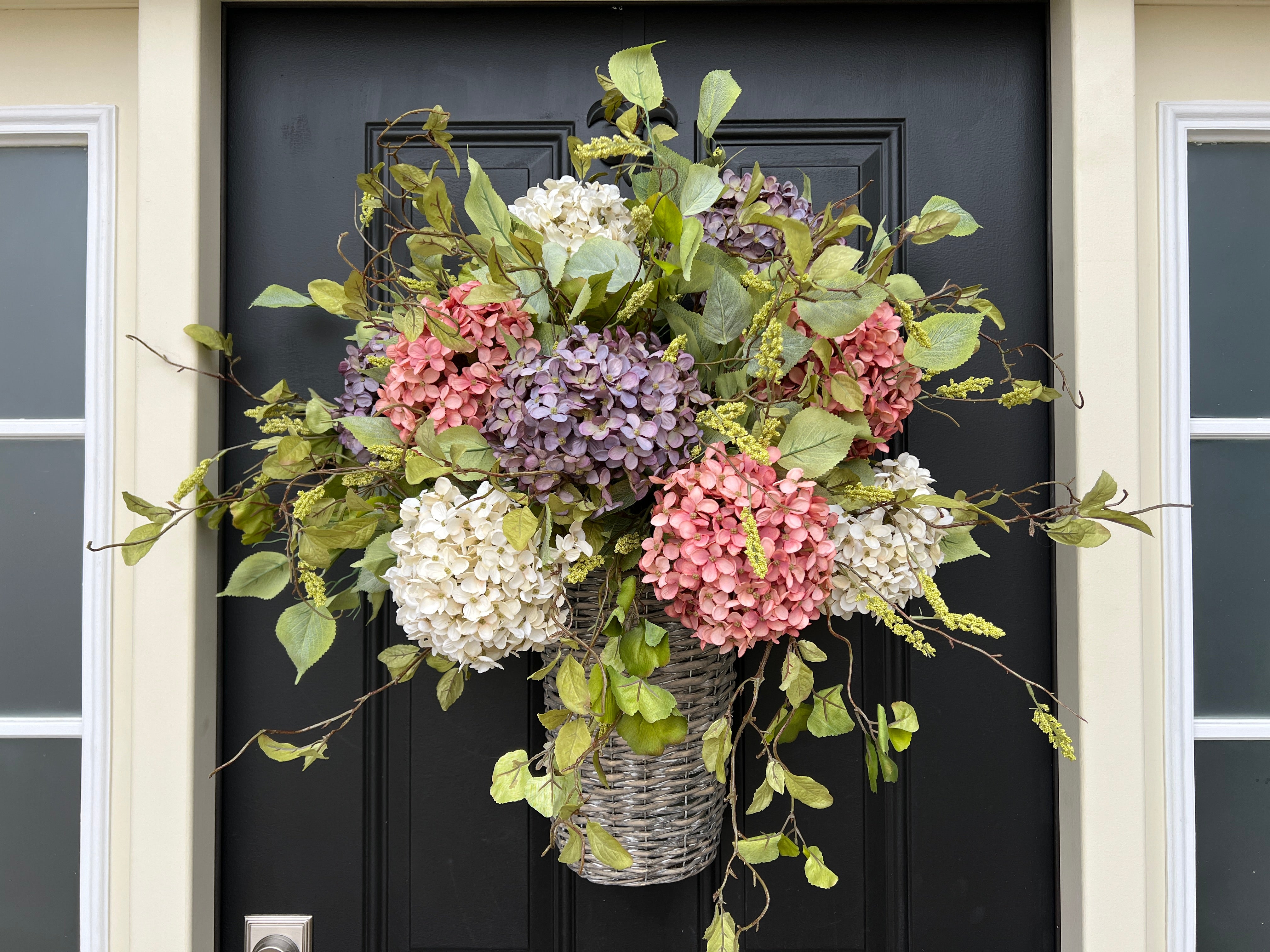Spring Hydrangea Basket Wreath for Door