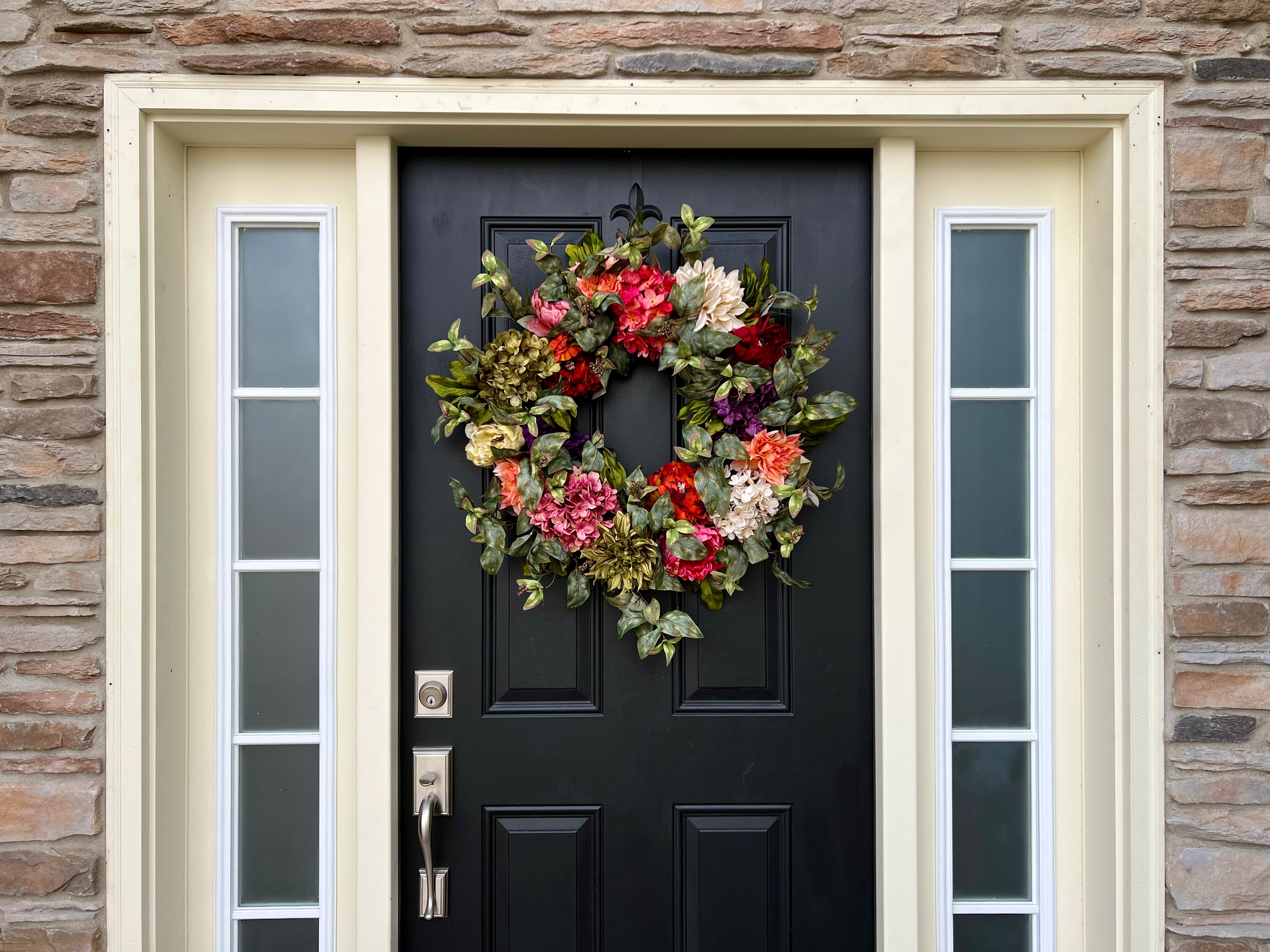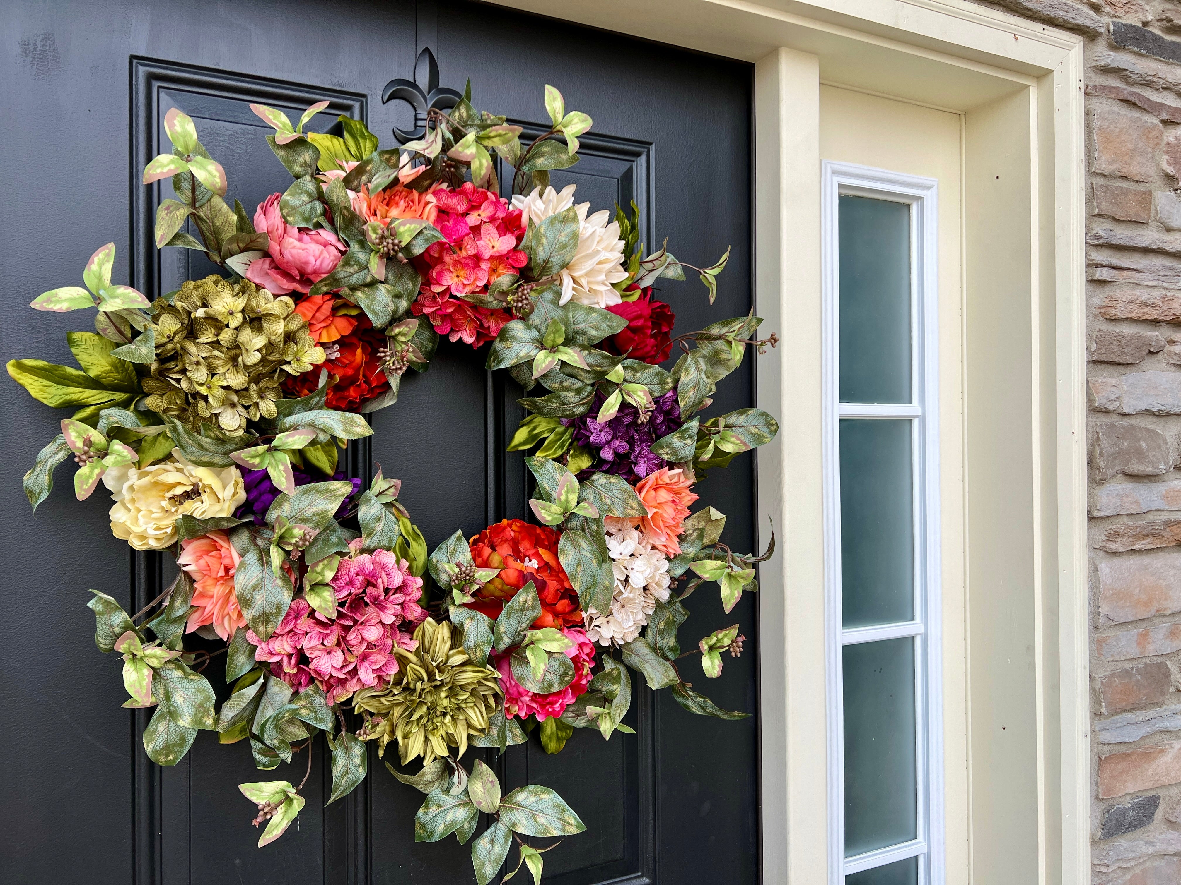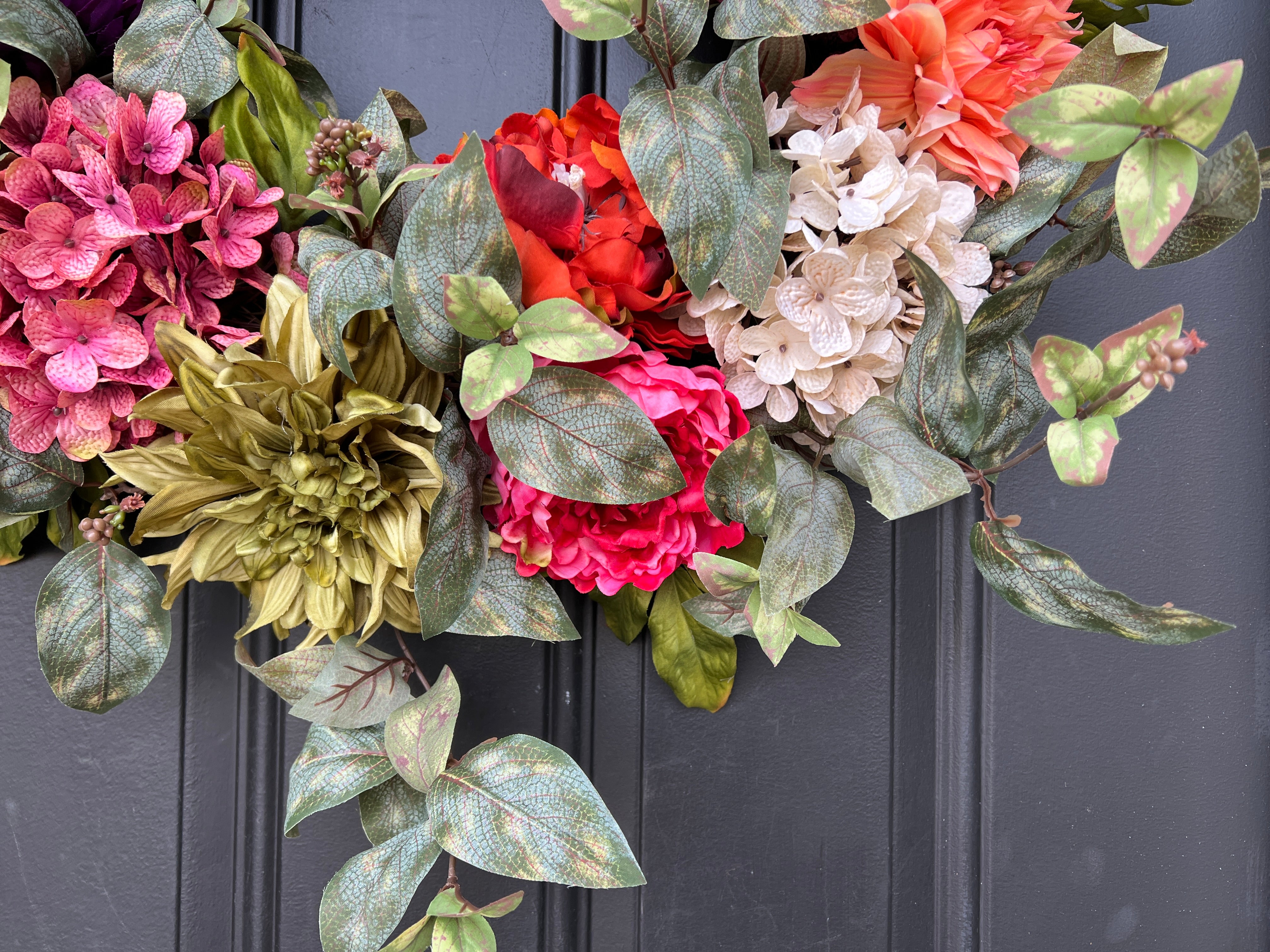 Celebrate the beauty of spring with the Spring Splendor Wreath. This vibrant floral wreath features a stunning mix of colorful blooms and lush variegated ivy. Perfect for your front door, it brings a fresh, cheerful touch to your entryway, welcoming guests with seasonal charm. Ideal for spring decor, the bright flowers and green ivy create a lively, nature-inspired aesthetic that enhances any outdoor or indoor space. Durable and beautiful, this wreath adds a timeless, vibrant look to your home throughout the season.