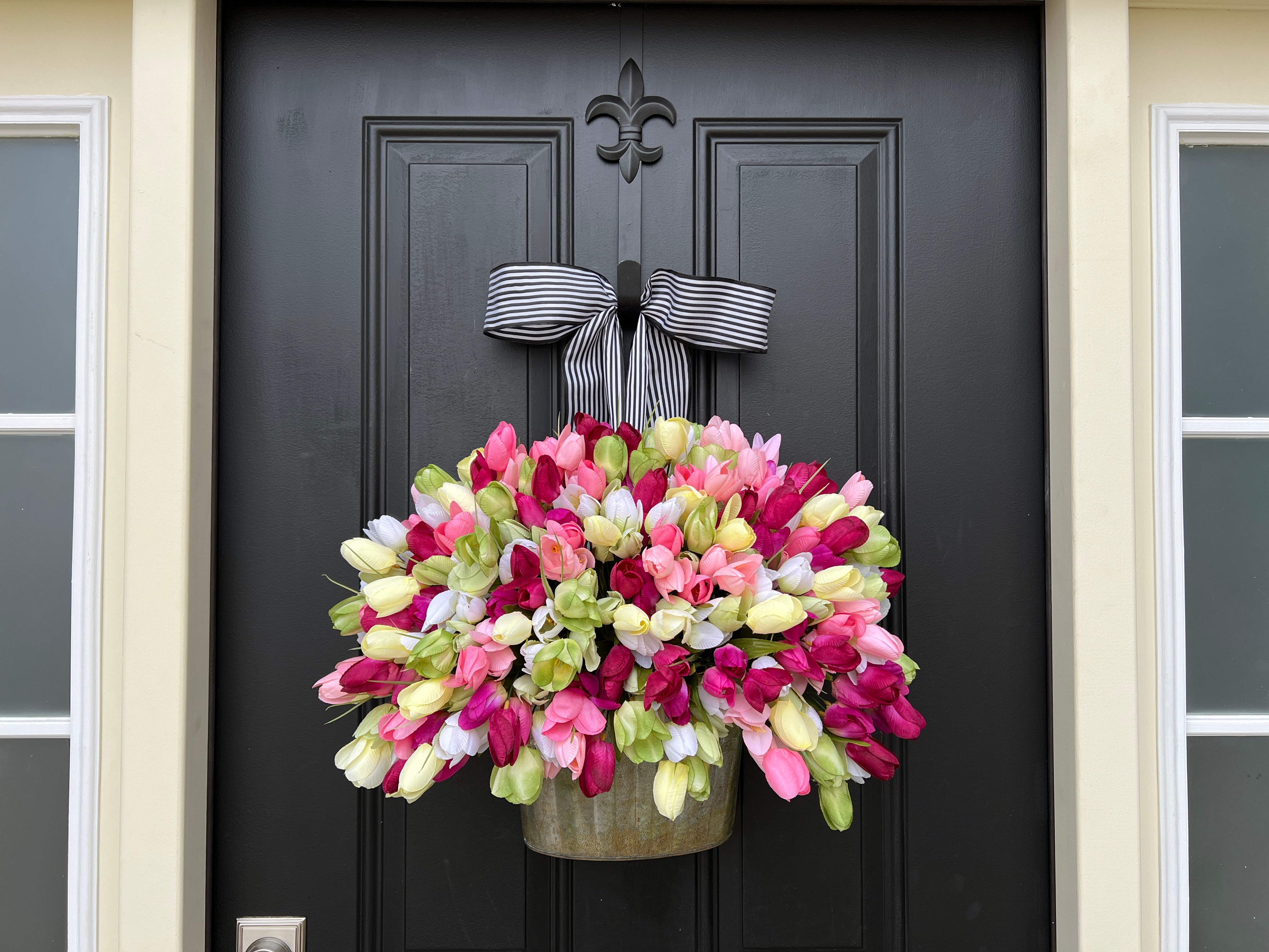 • Spring Tulips for Front Door - Tulip Bucket Wreath, Mother's Day Gifts