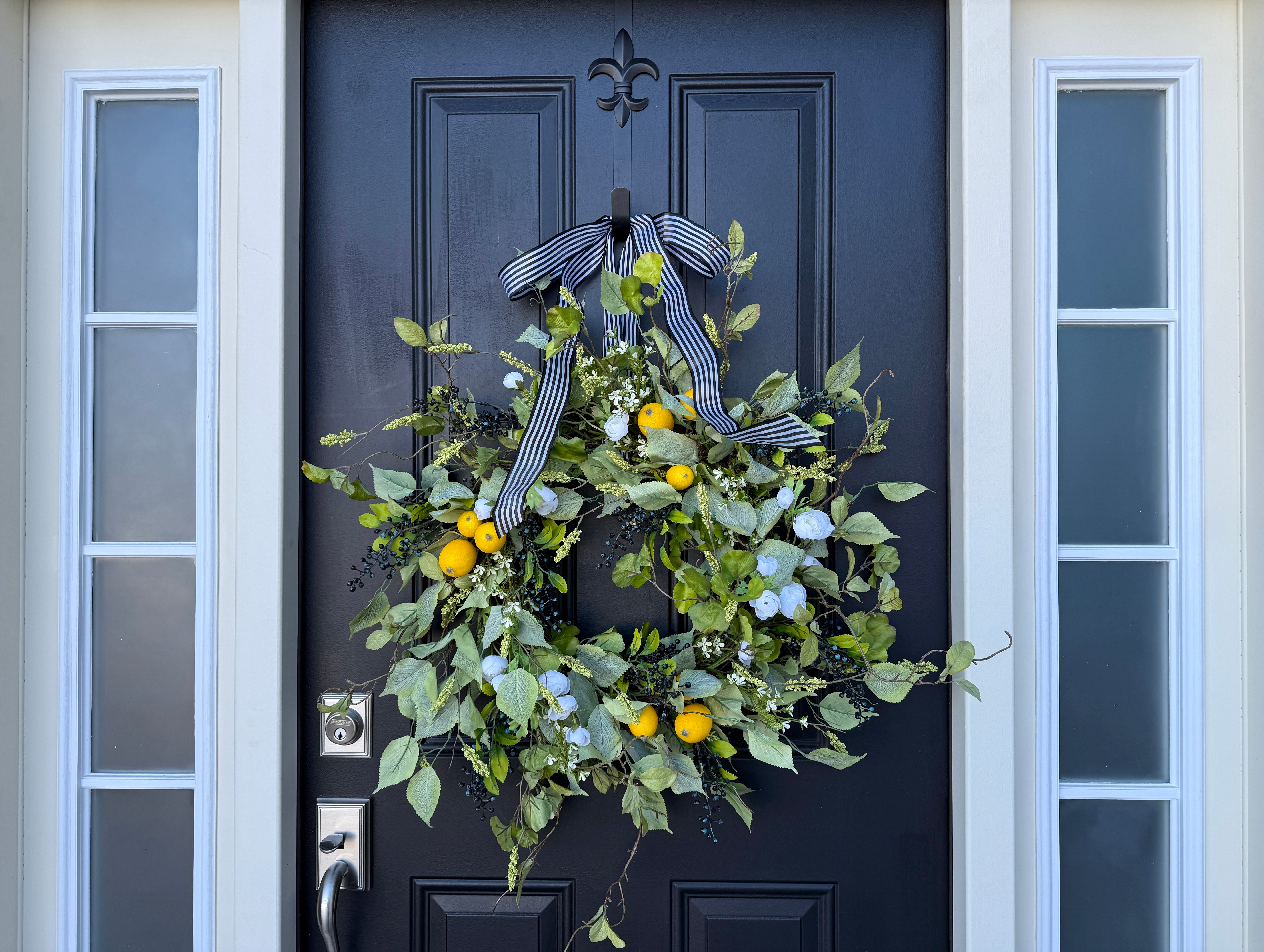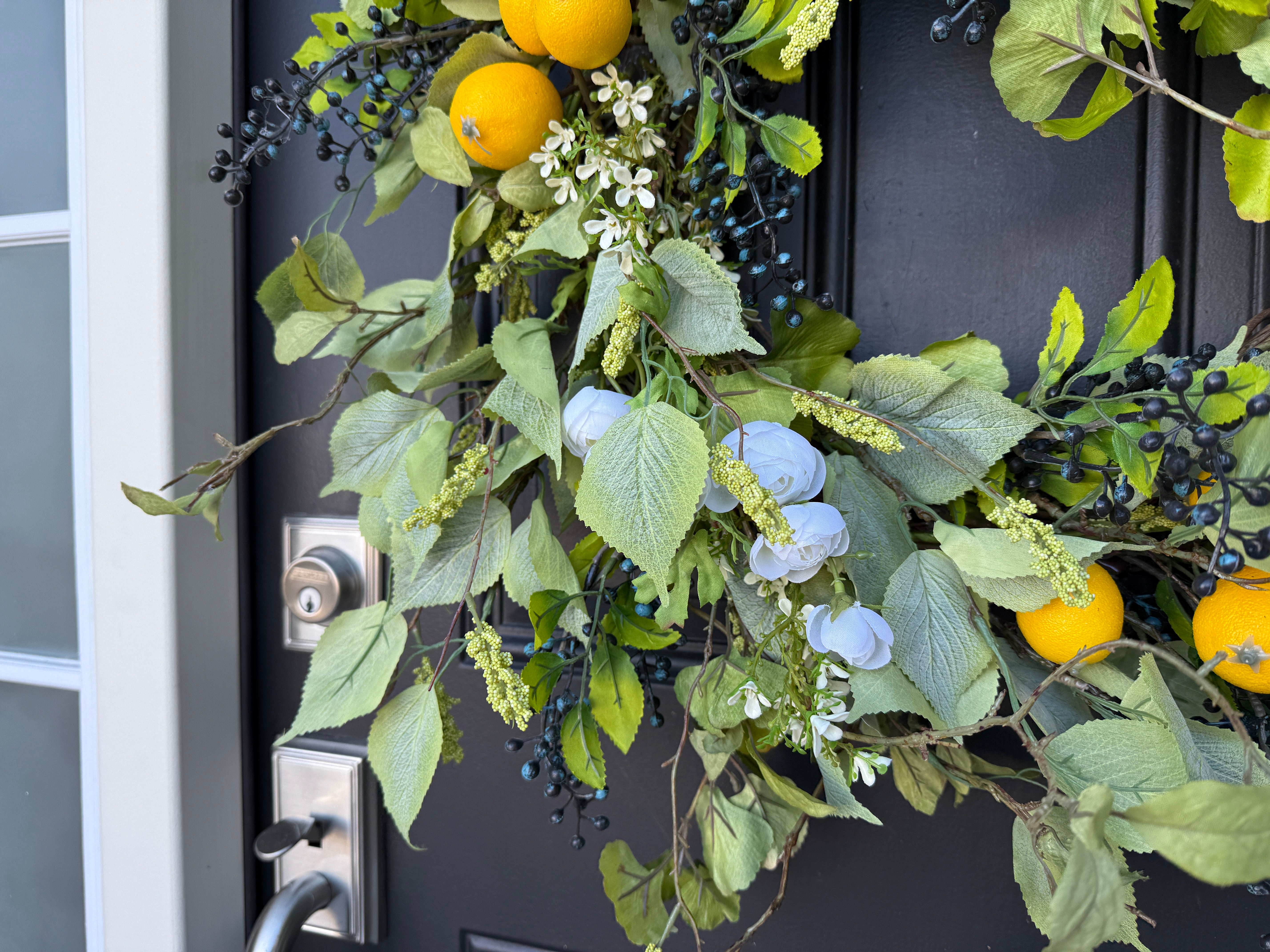 Brighten up your home with our refreshing Spring and Summer Lemon Wreath with white ranunculus and blueberry! Twoinspireyou is committed to crafting exquisite, one-of-a-kind spring and summer wreaths for you to enjoy season after season, year after year. We are your one-stop shop for the best in front door wreaths for every season and every reason!