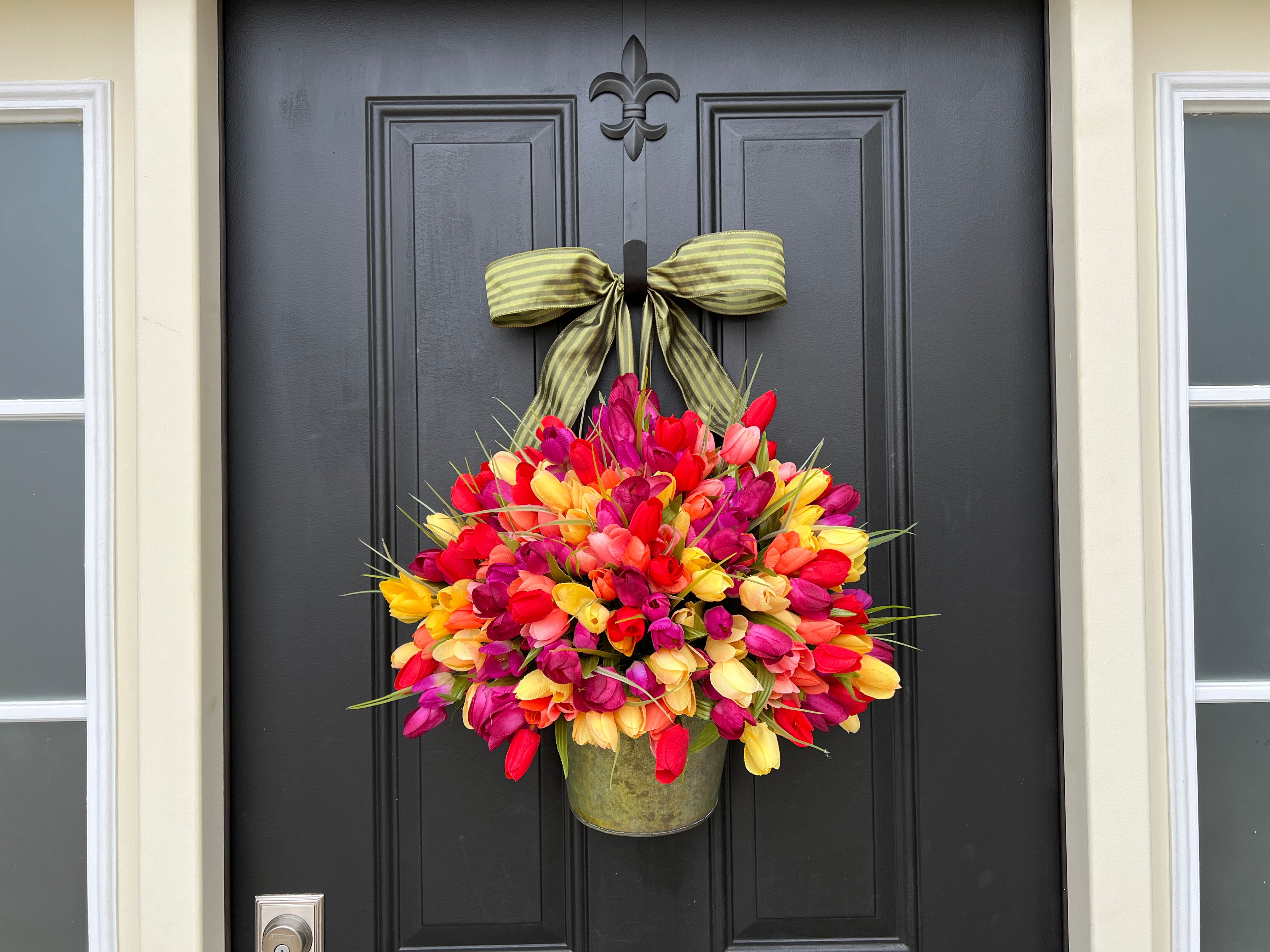 • Vibrant Spring Tulips in Galvanized Bucket - Front Door Decor with Tulips