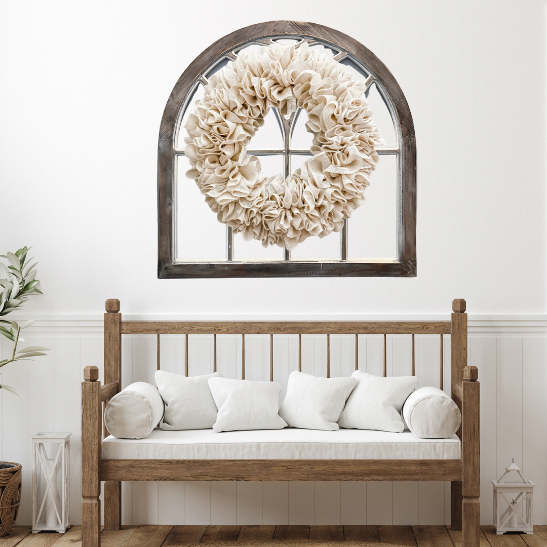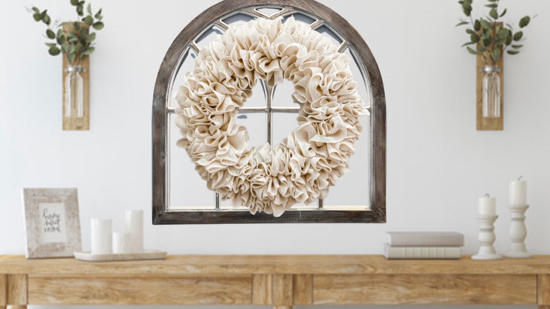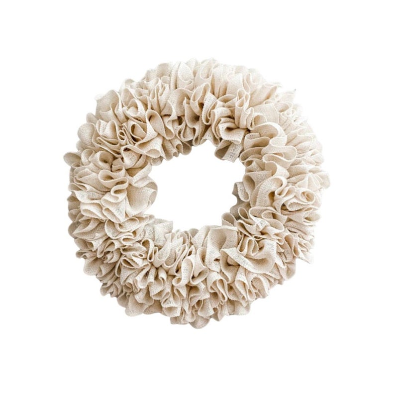 This off white burlap wreath is a rustic all season wreath that is multifunctional to be styled both indoors and outdoors. This plain ruffled burlap wreath will bring country vibes and farmhouse style to your cozy home.