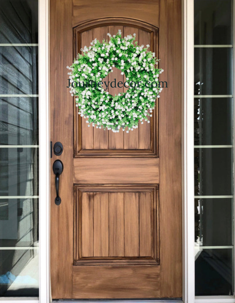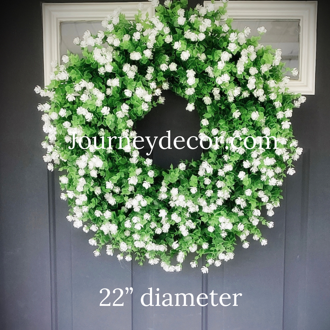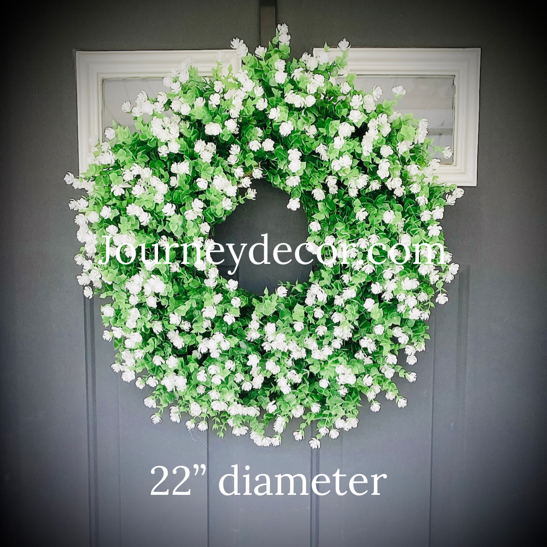 This white wildflower wreath will be the talk of your neighborhood. It’s realistic foliage will brighten up your front door and add a touch of elegance.