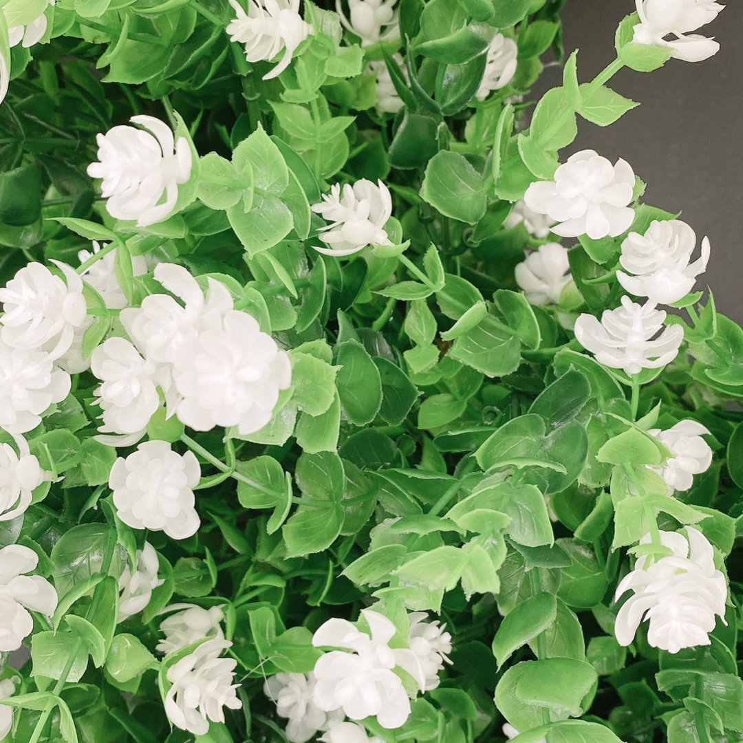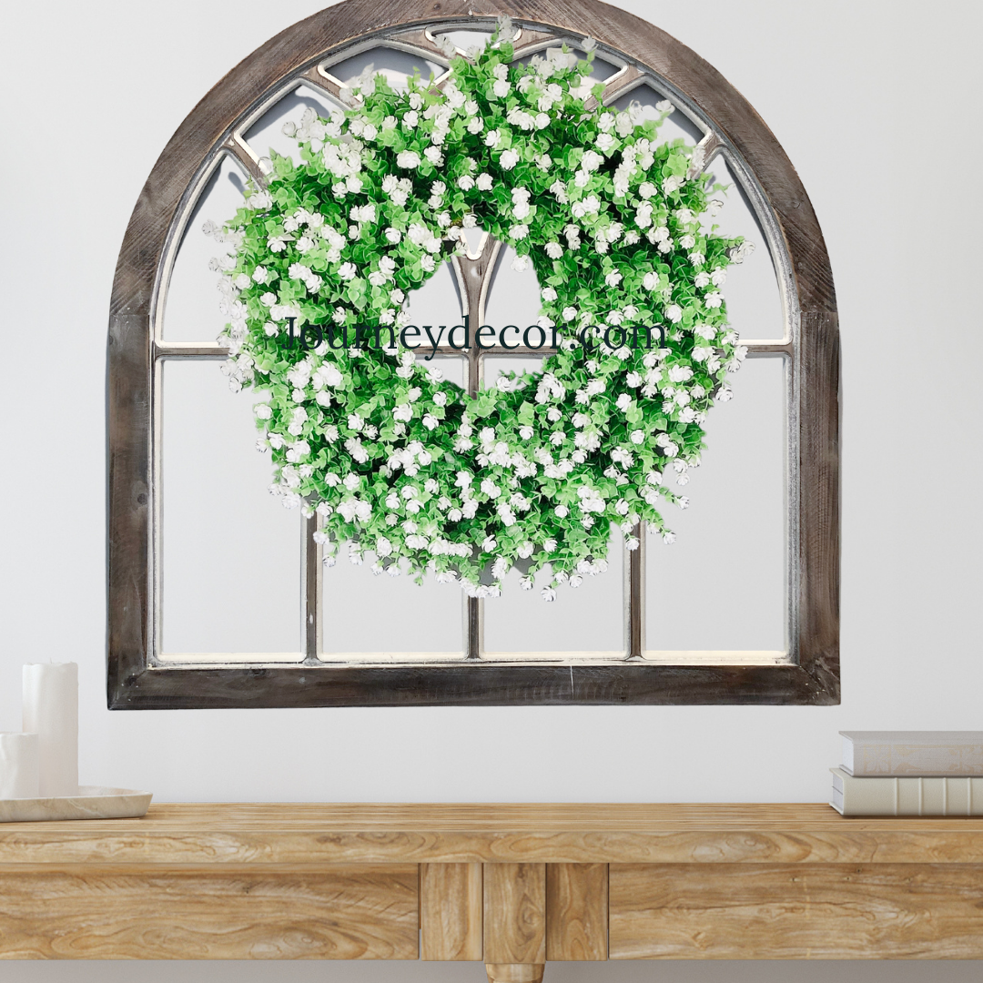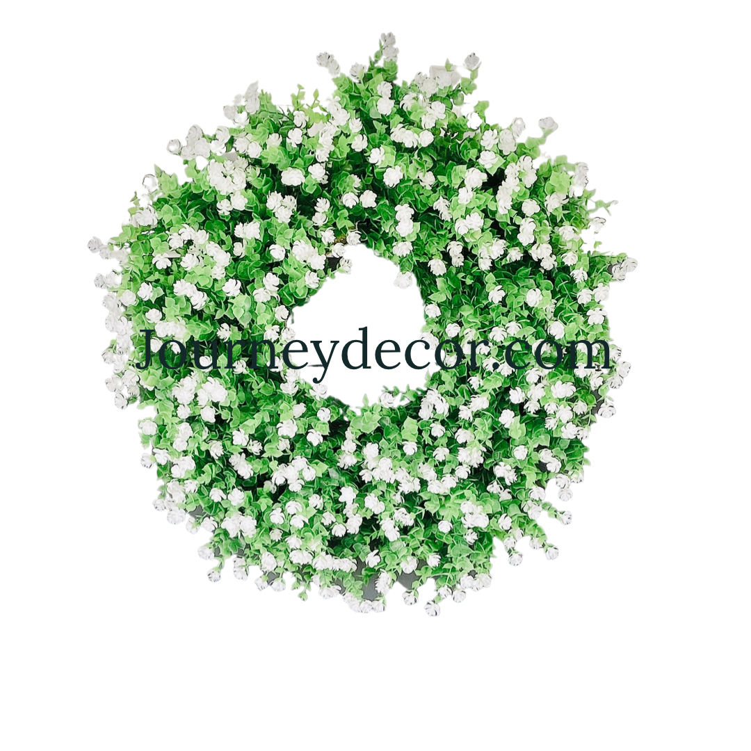 This white wildflower wreath will be the talk of your neighborhood. It’s realistic foliage will brighten up your front door and add a touch of elegance.