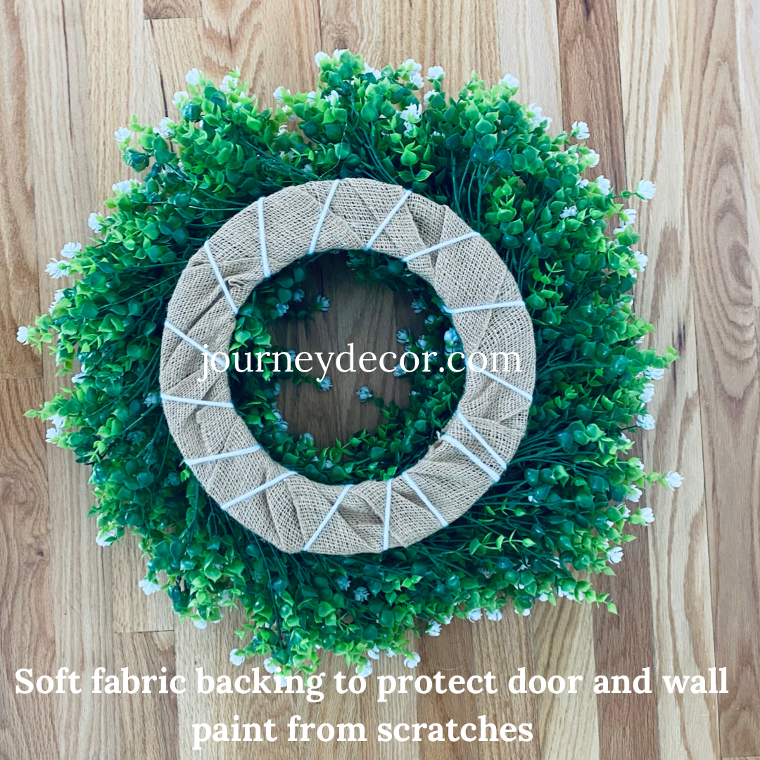 - Backing of the wreath is fabric based to protect your freshly painted front door from scratches