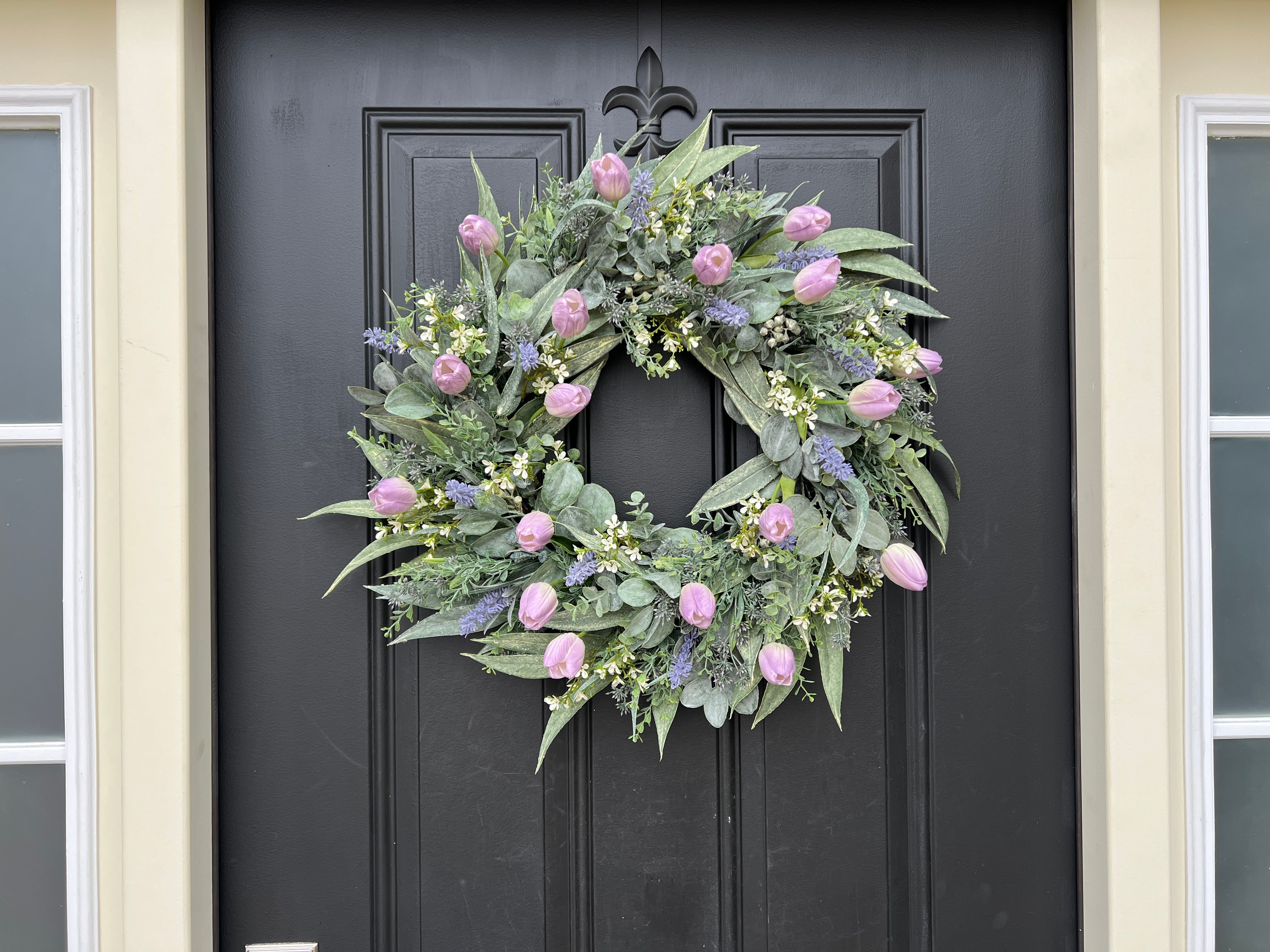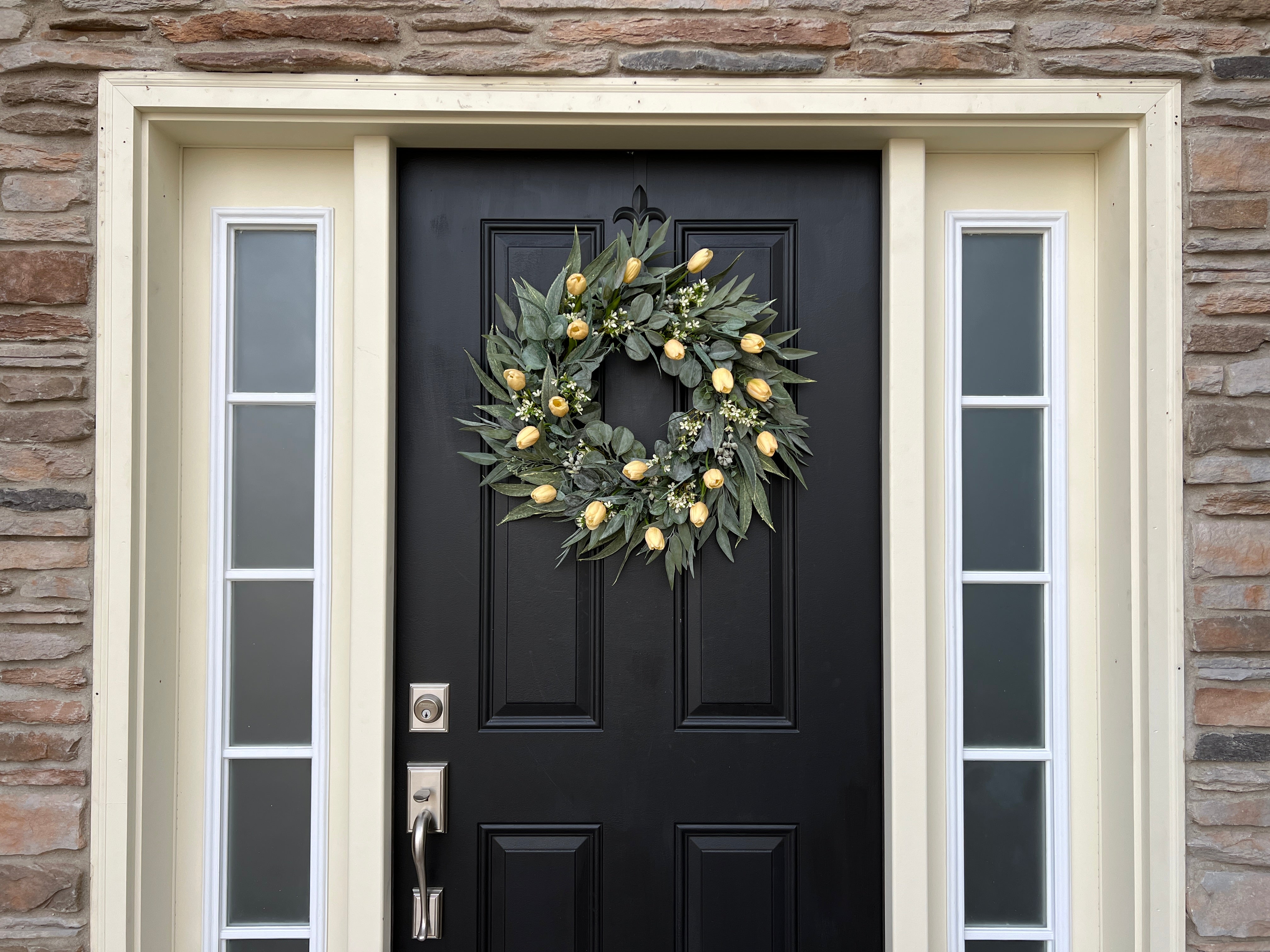 • Yellow Tulip Wreath for Spring & Easter, Natural Touch Tulip Door Decor