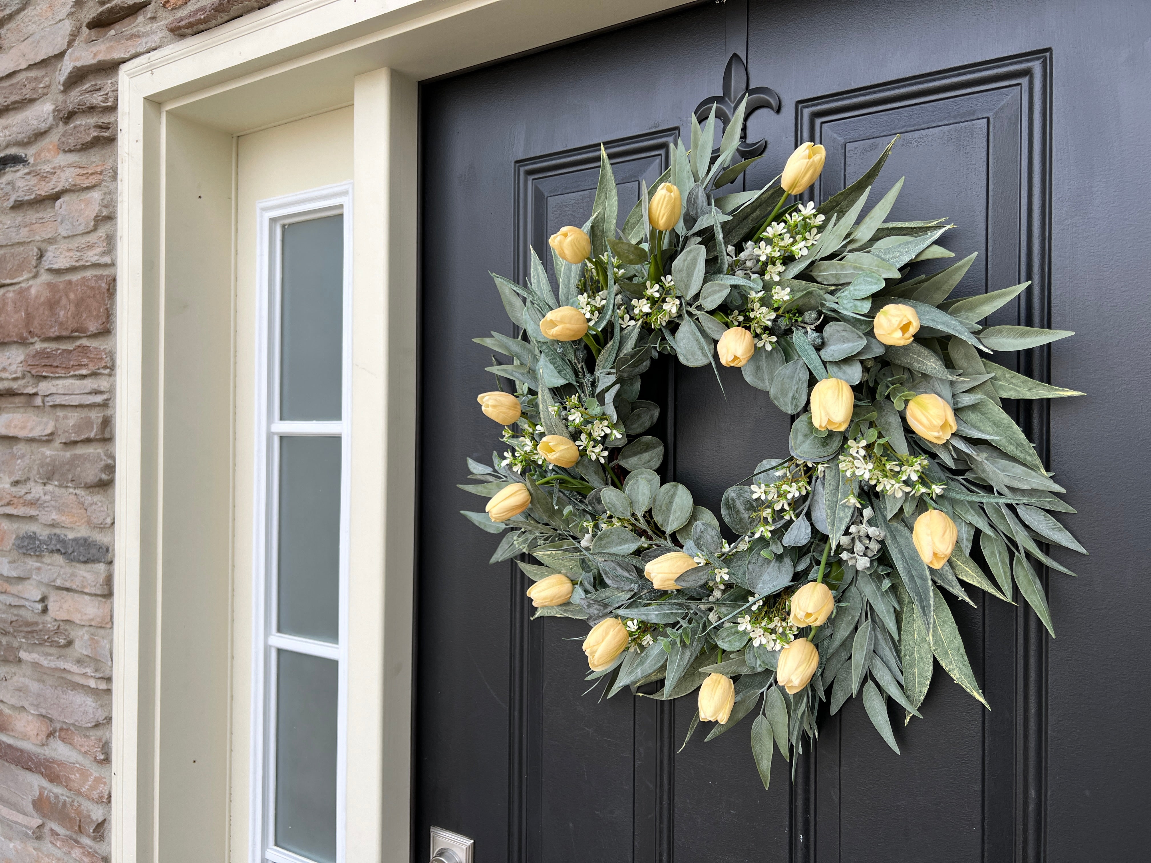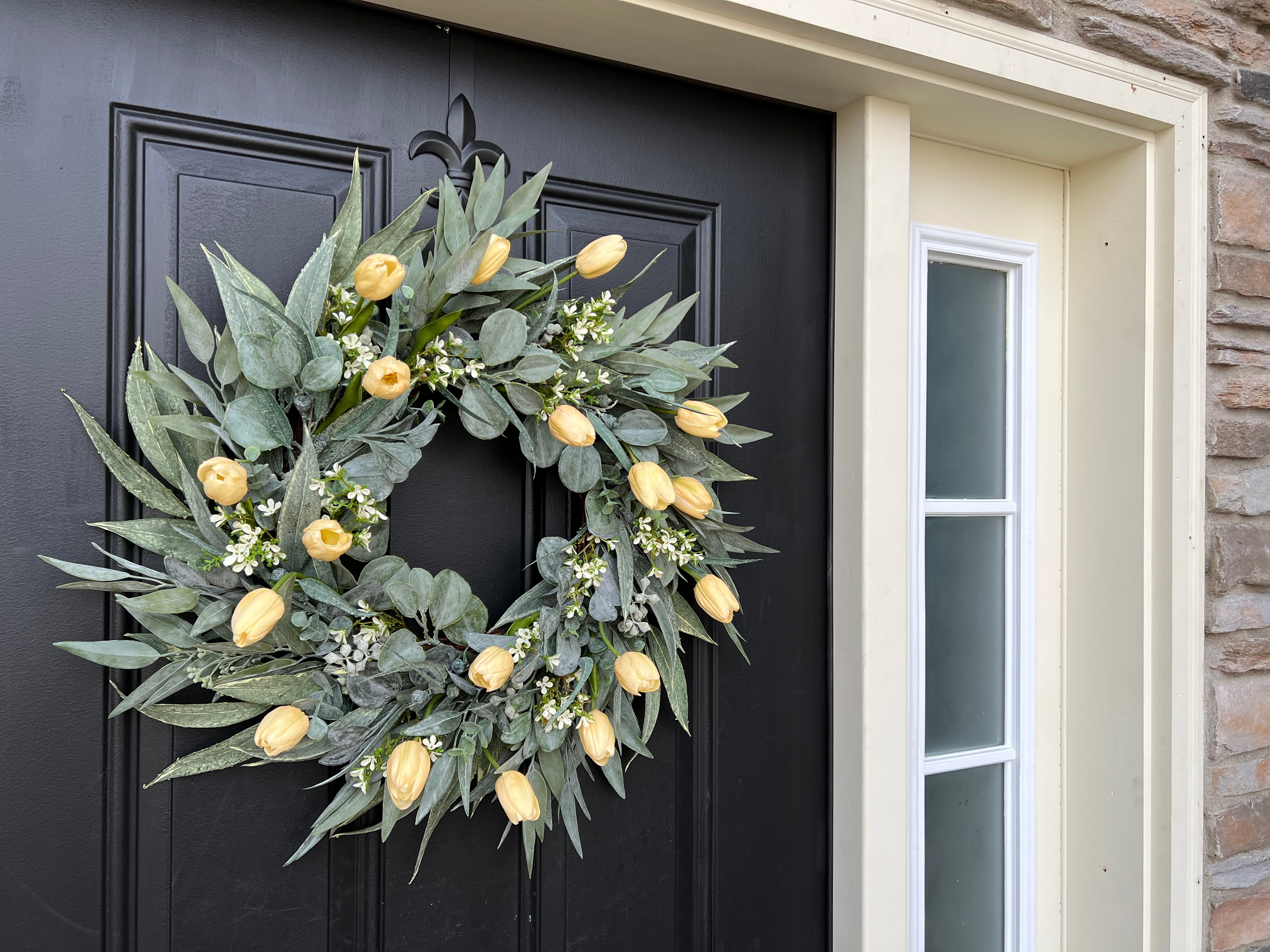 Yellow Tulip Wreath for Spring & Easter, Natural Touch Tulip Door Decor