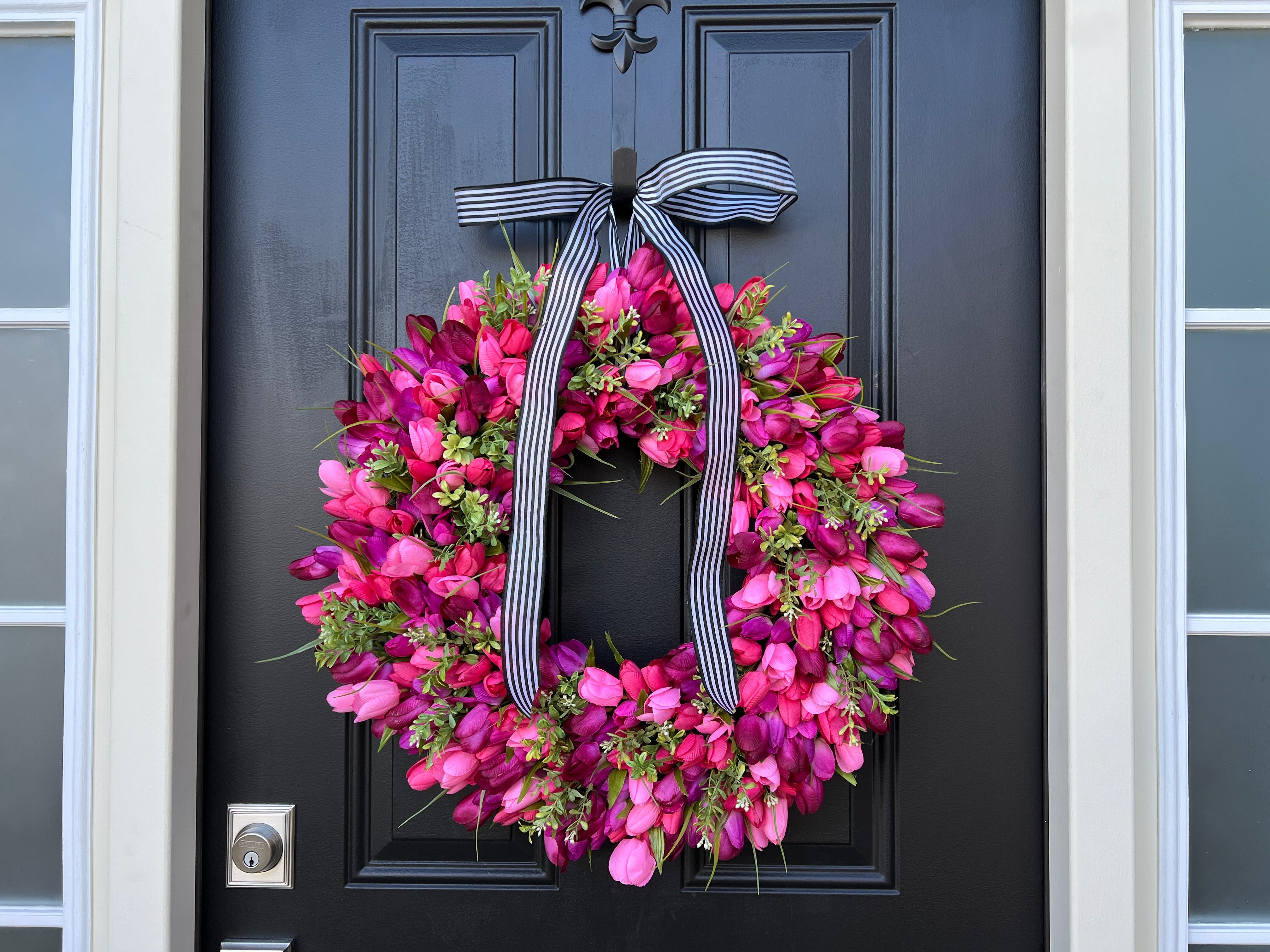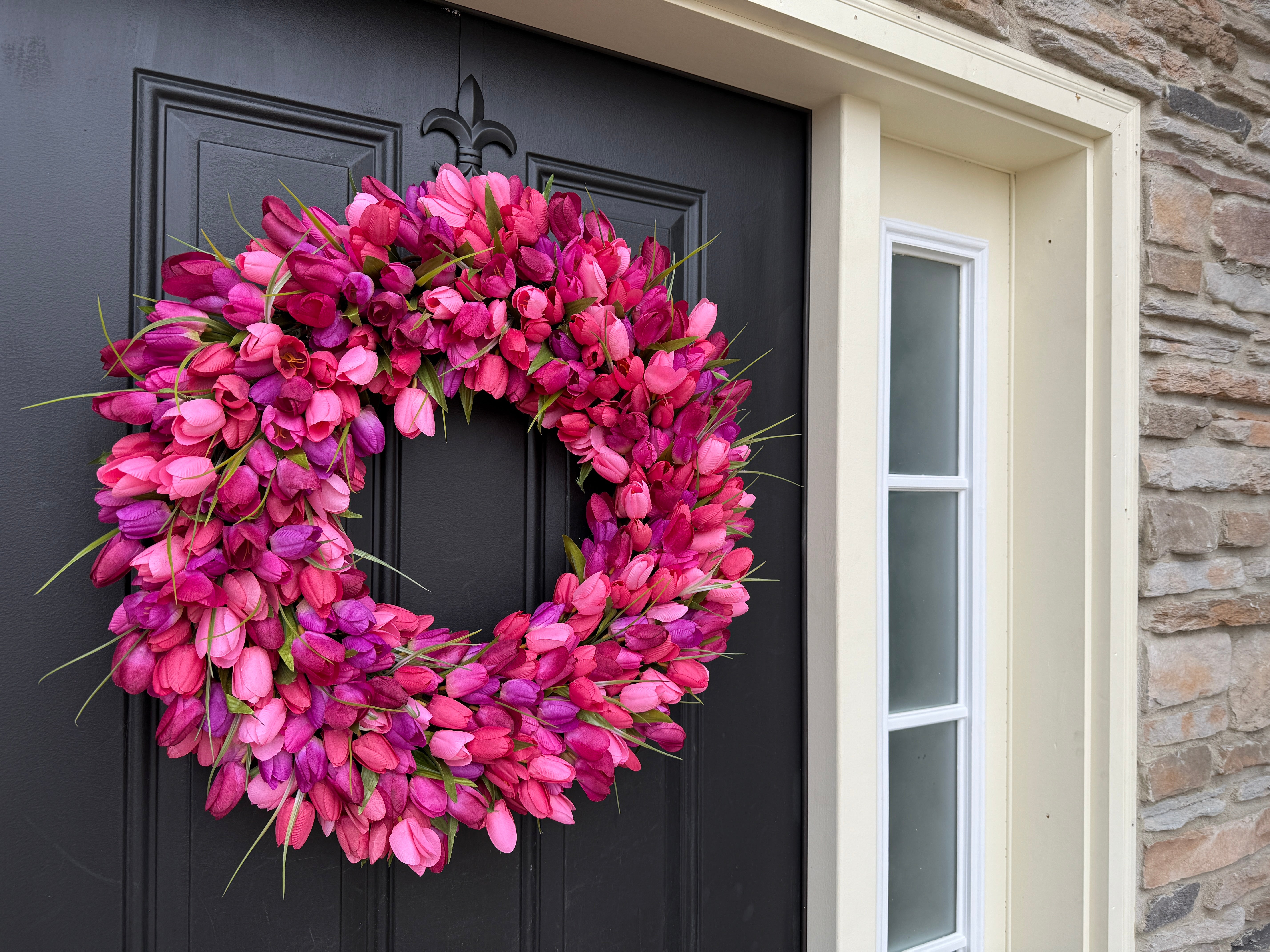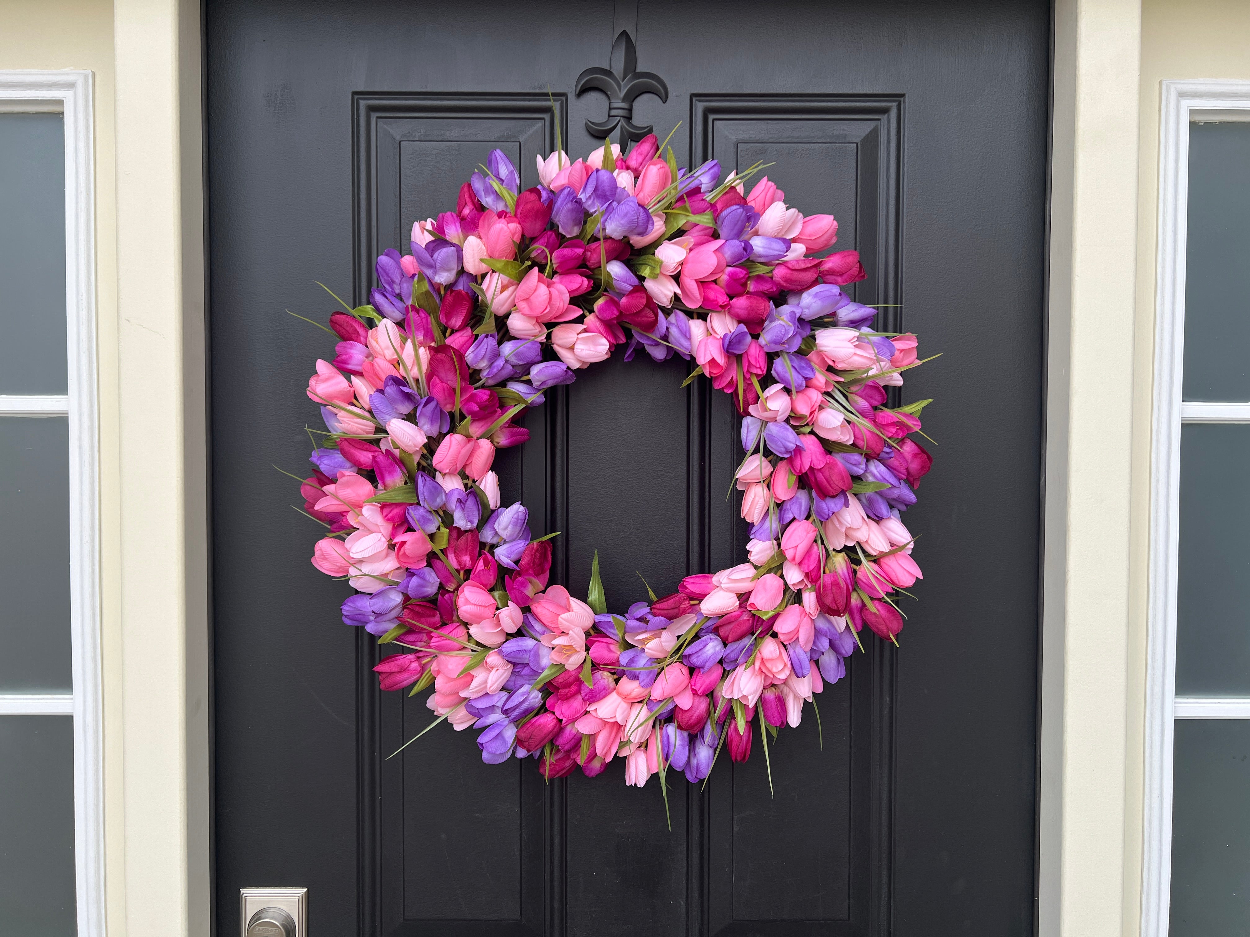Pink and Purple Tulip Wreath for Spring, Front Door Wreath with Tulips