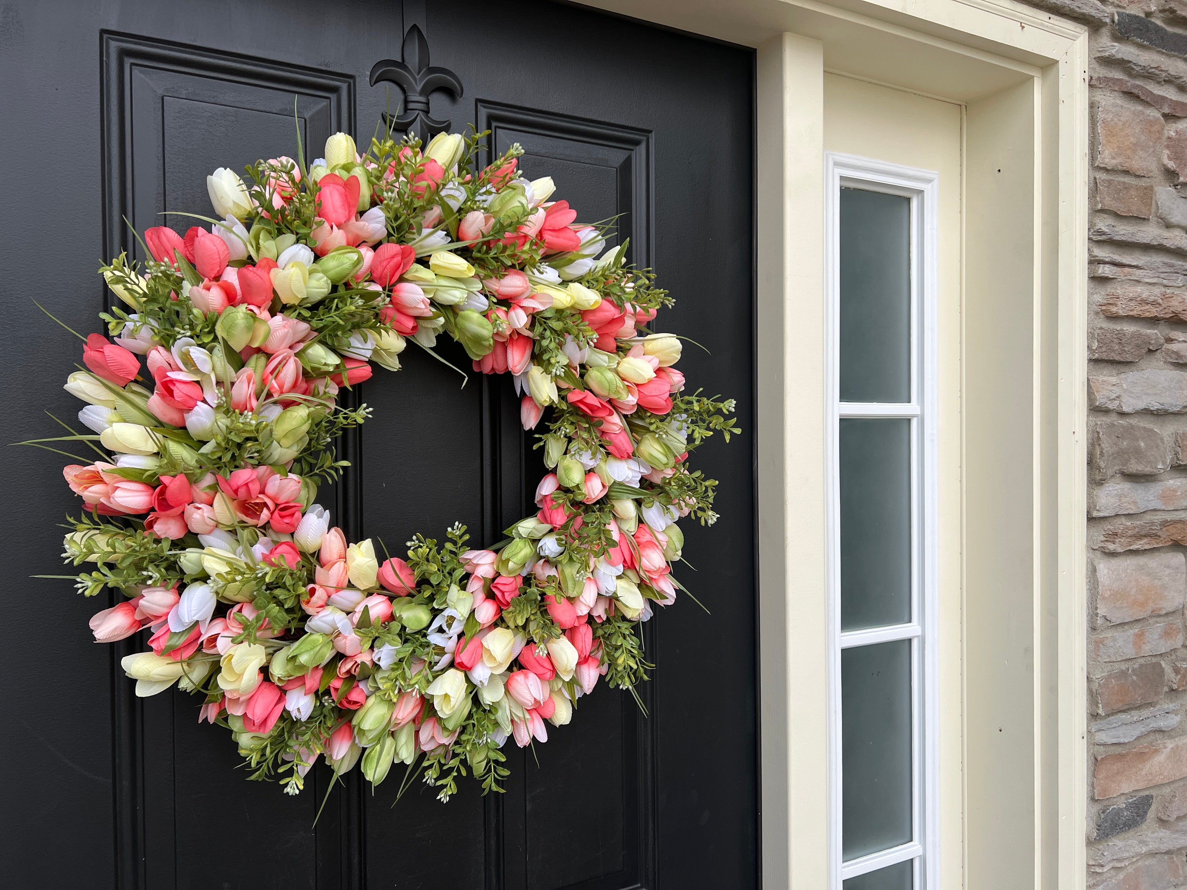 Charming 24” Pink and Yellow Spring Tulip Wreath - Perfect Mother's Day Gift for Her
