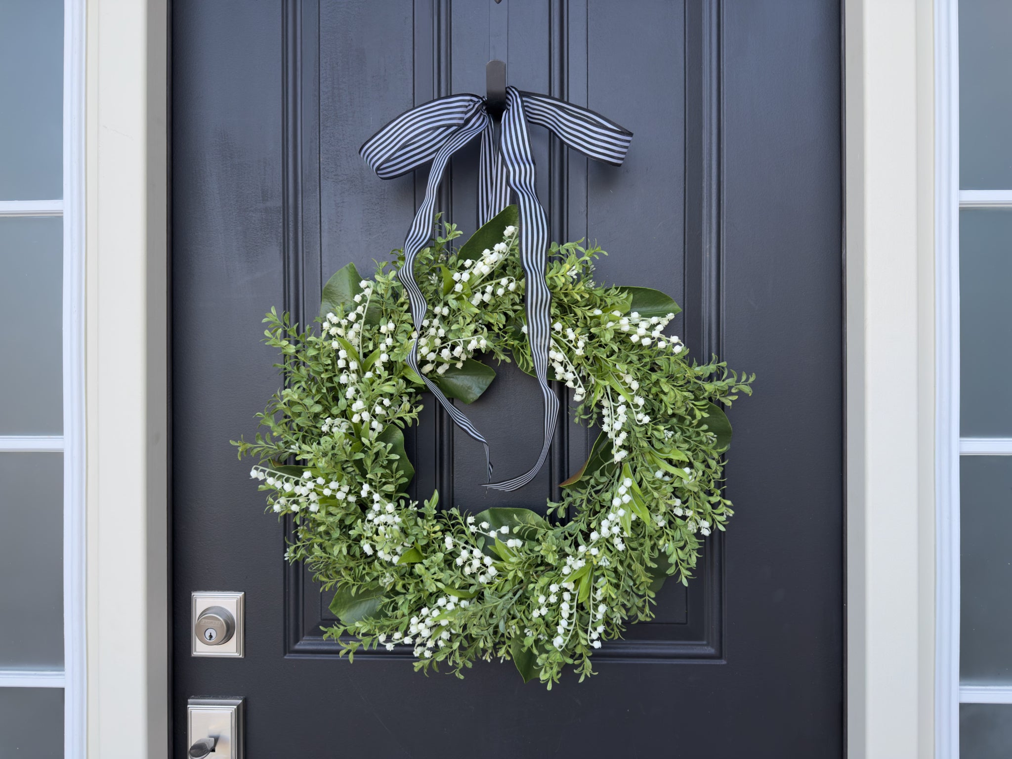 Spring Boxwood Wreath with Magnolia and Lily of the Valley