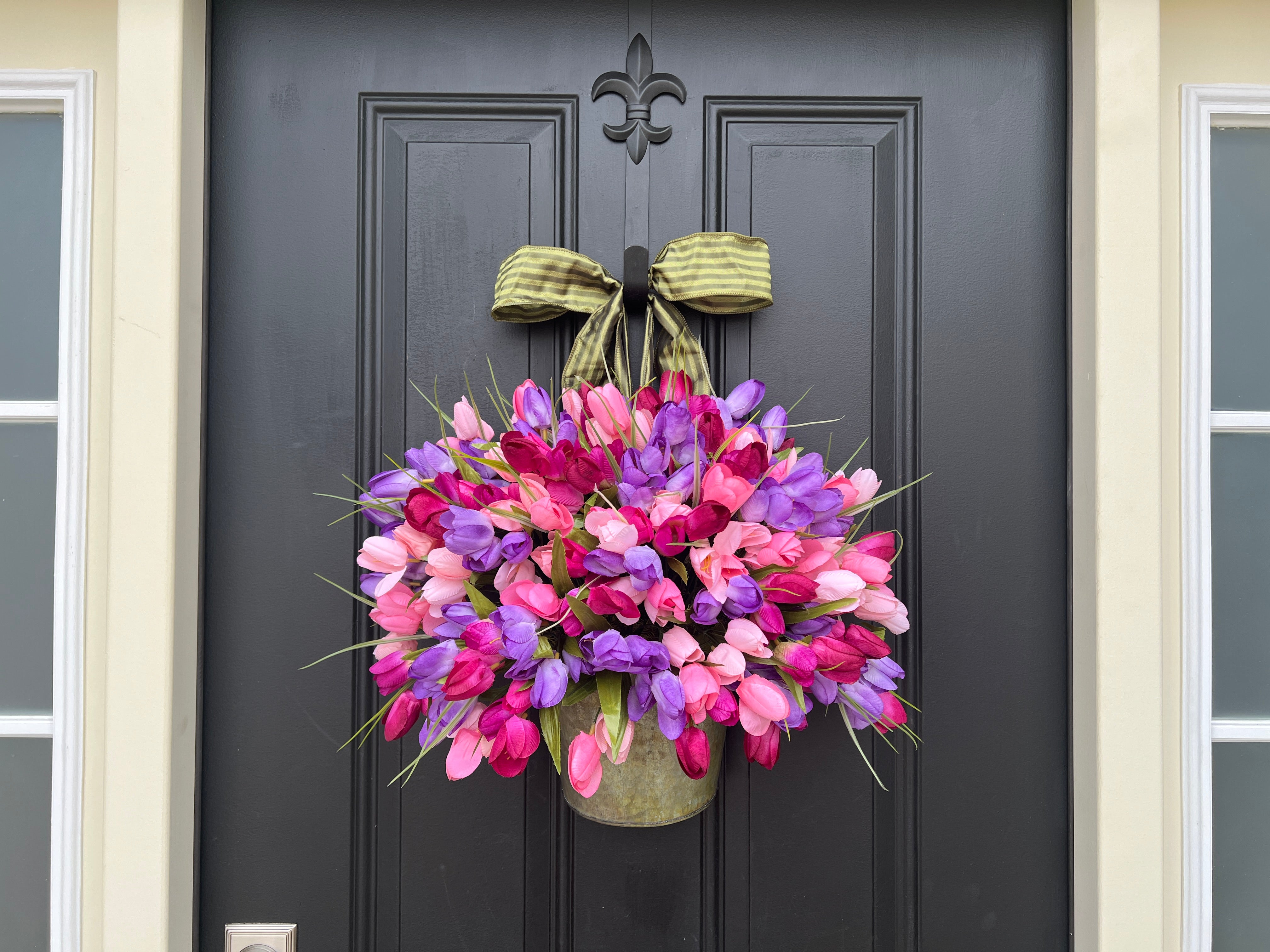 Pink and Purple Tulip Wreath - Spring Tulips Door Wreath