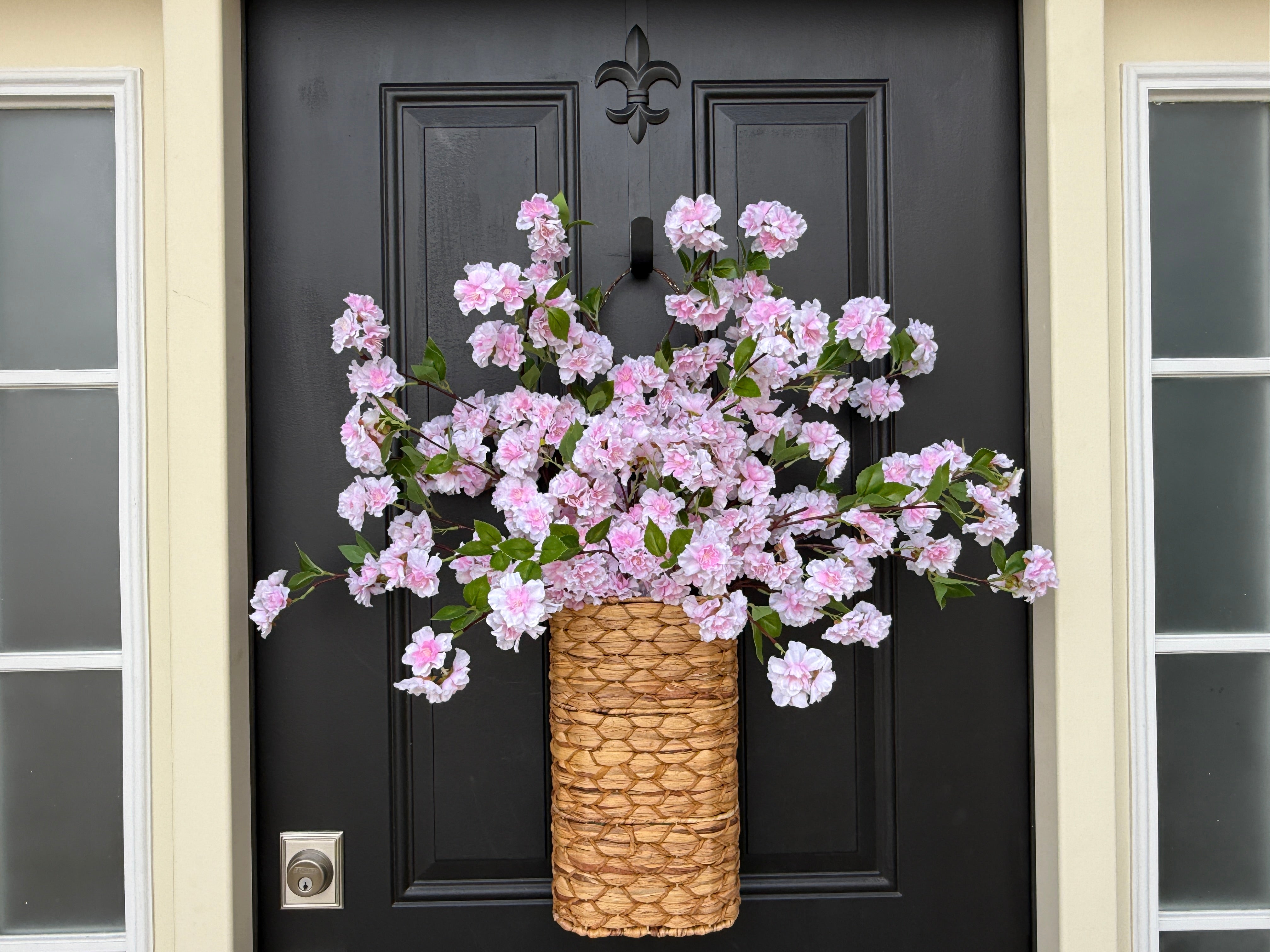 Cherry Blossoms Basket Wreath - Front Door Basket with Pink Blooms