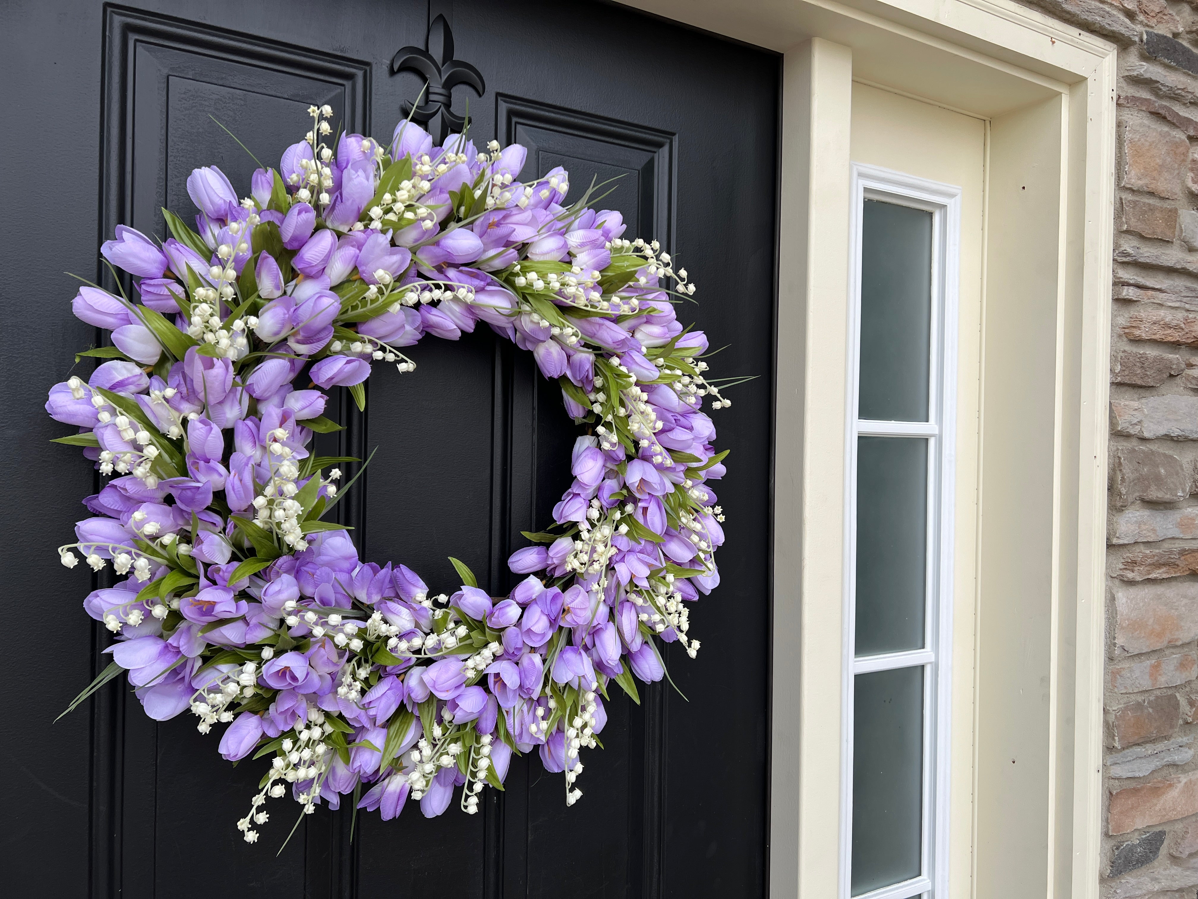 Purple Tulip Wreath with Lily of the Valley, Front Door Spring Tulip Wreath
