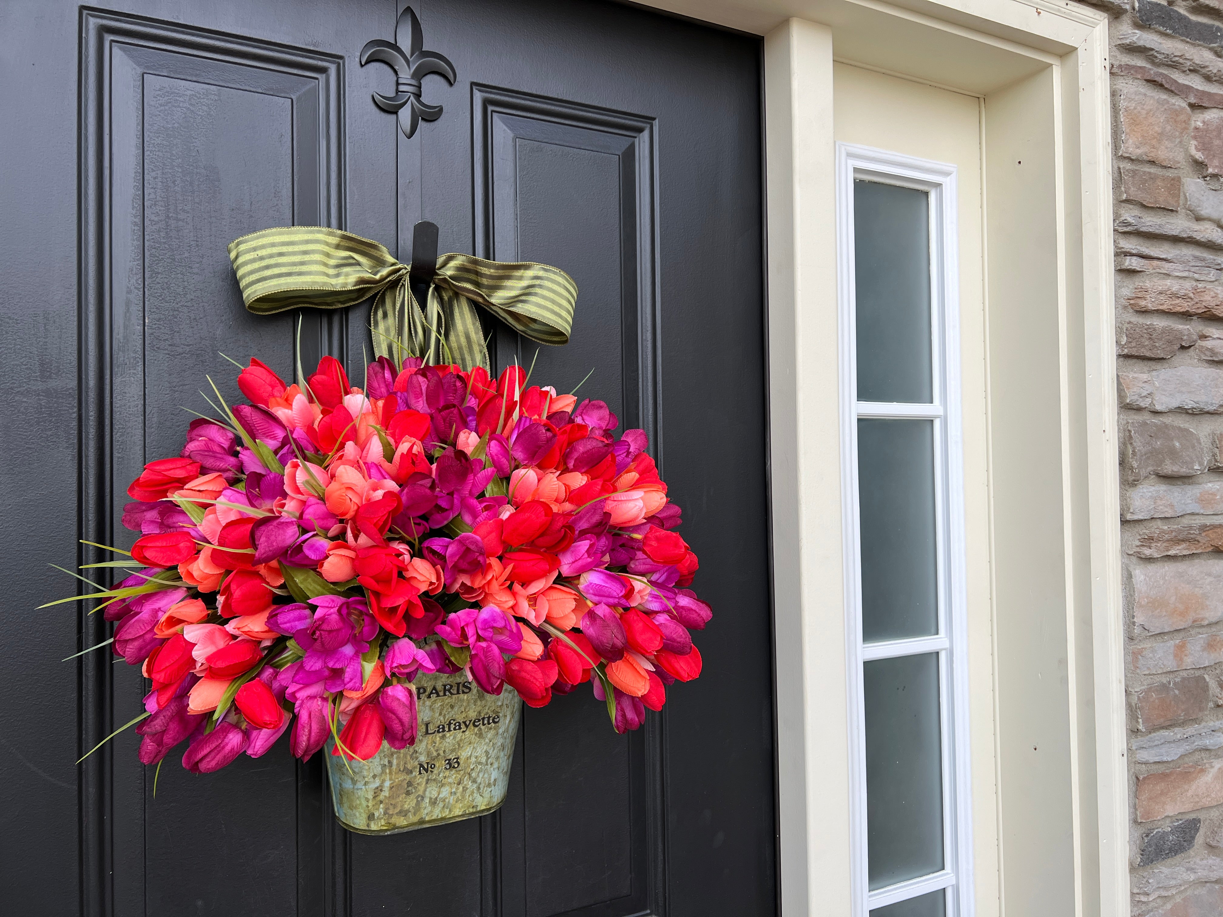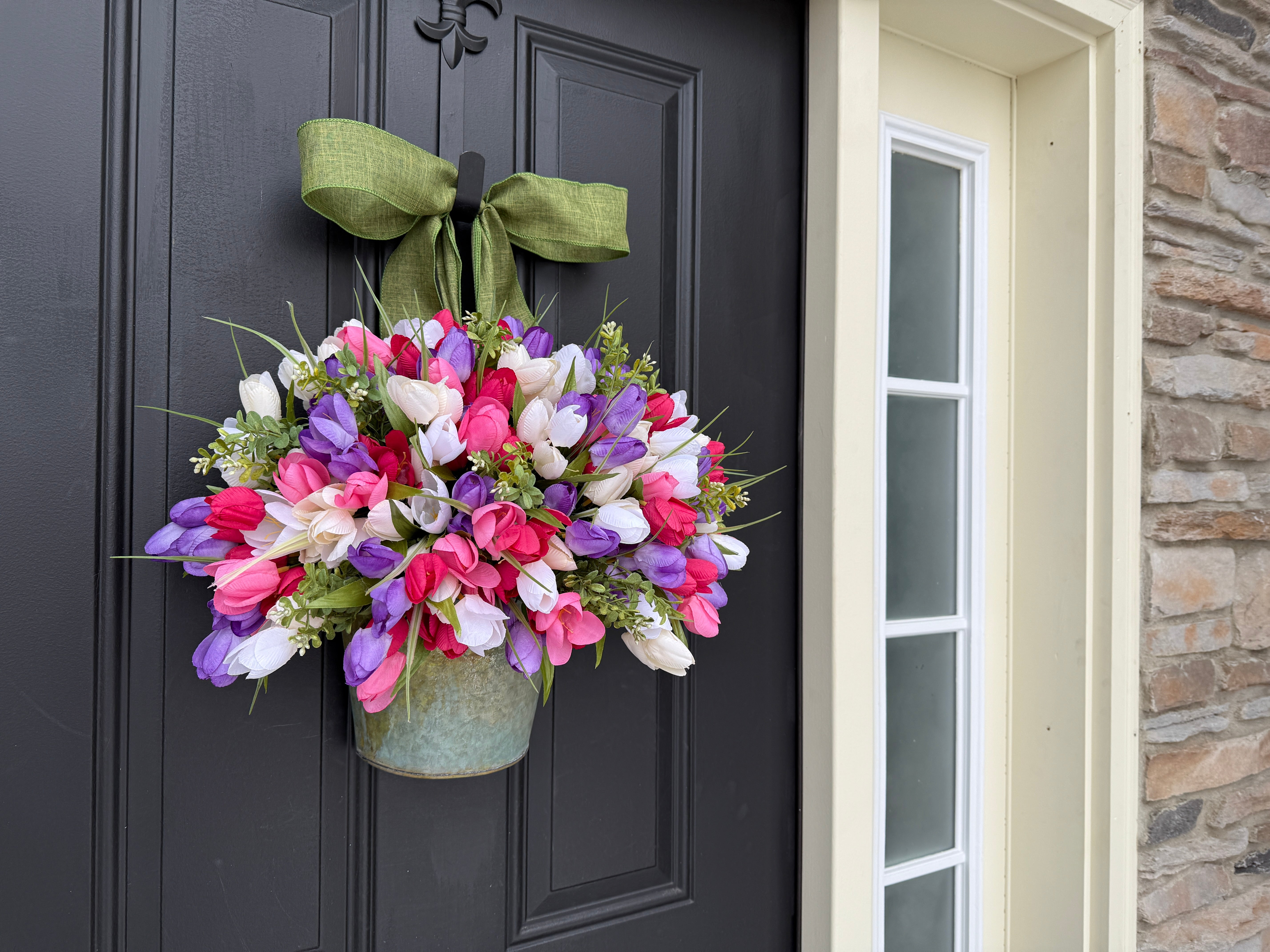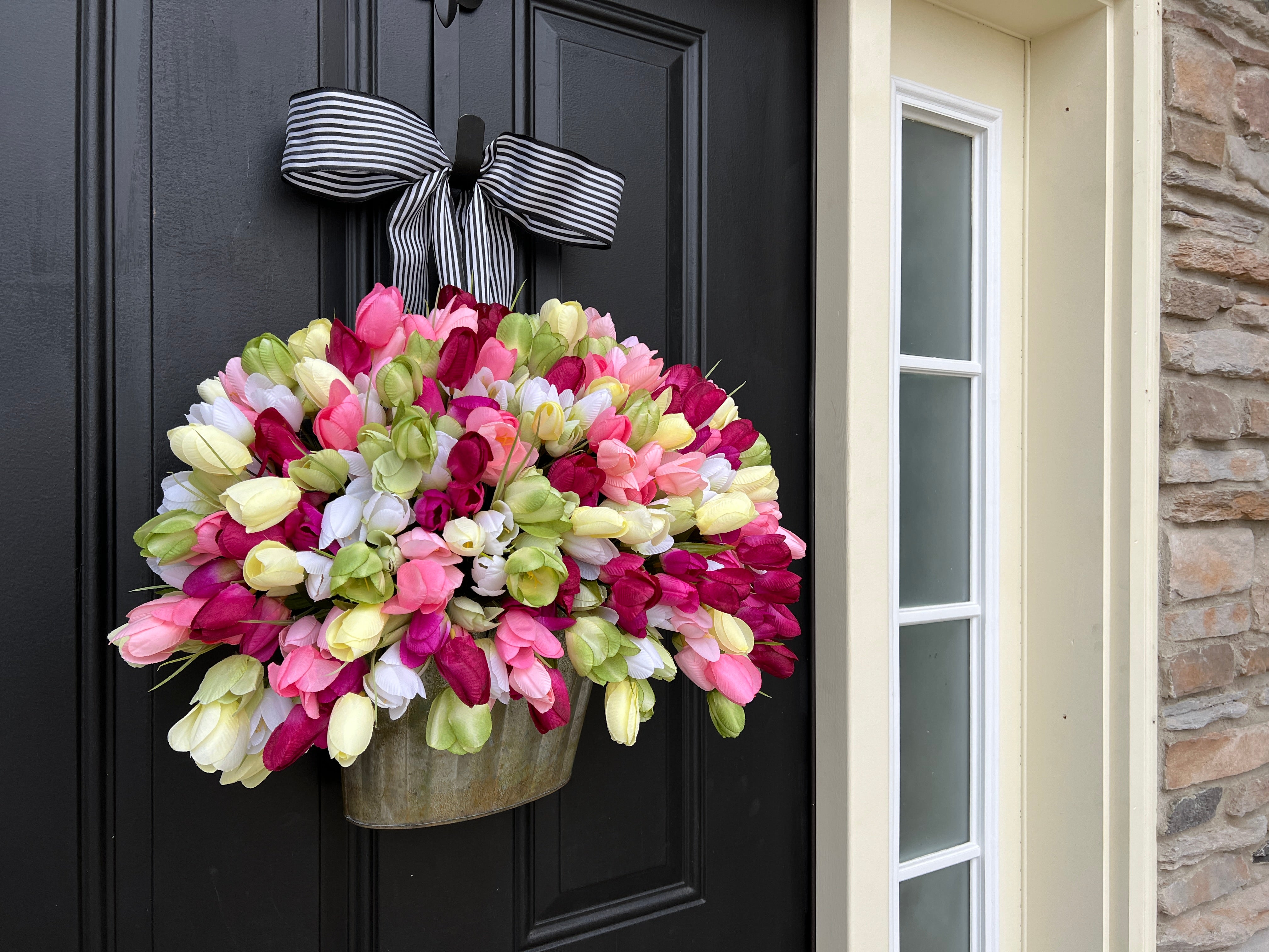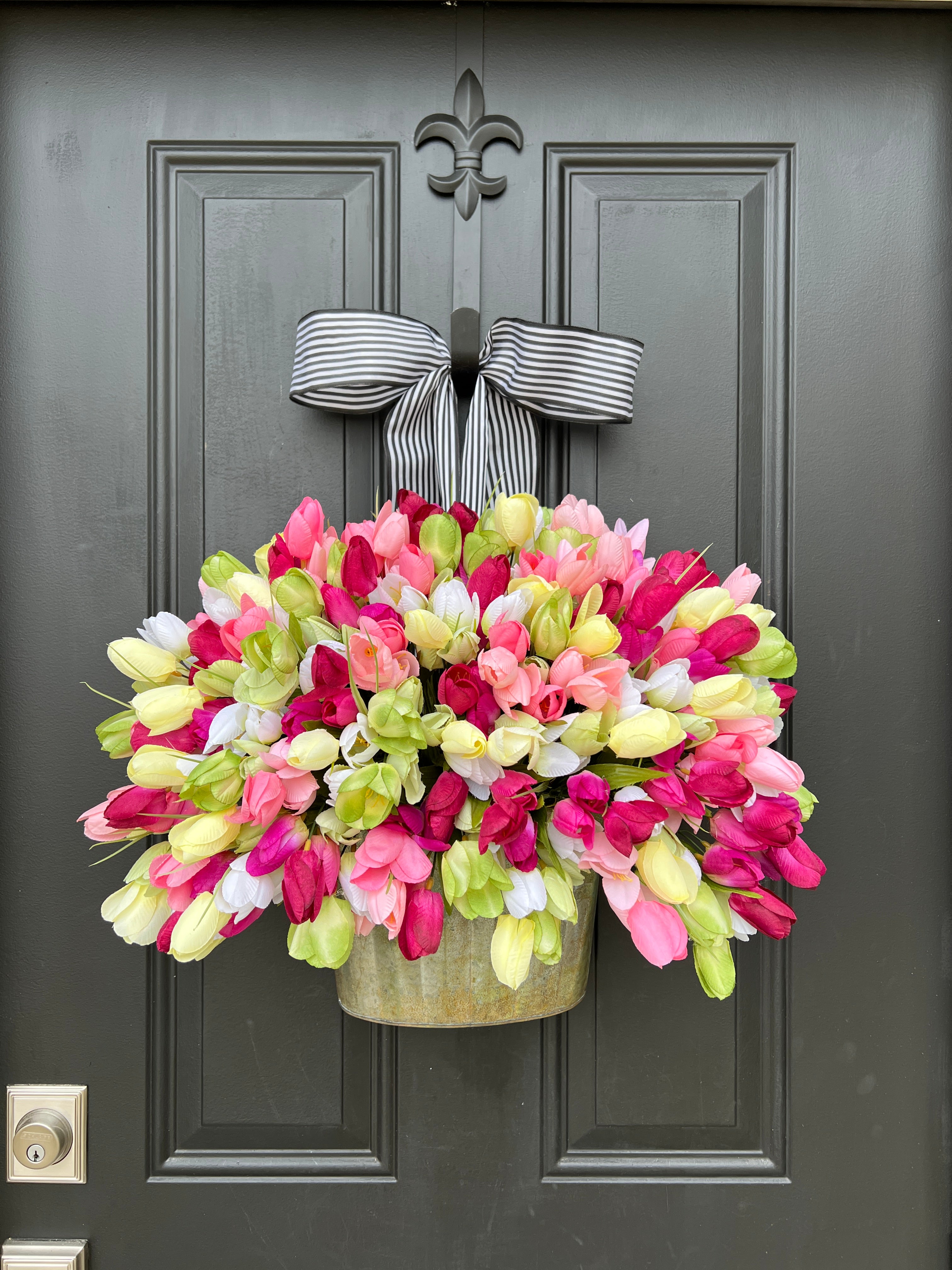 Spring Tulips for Front Door - Tulip Bucket Wreath, Mother's Day Gifts