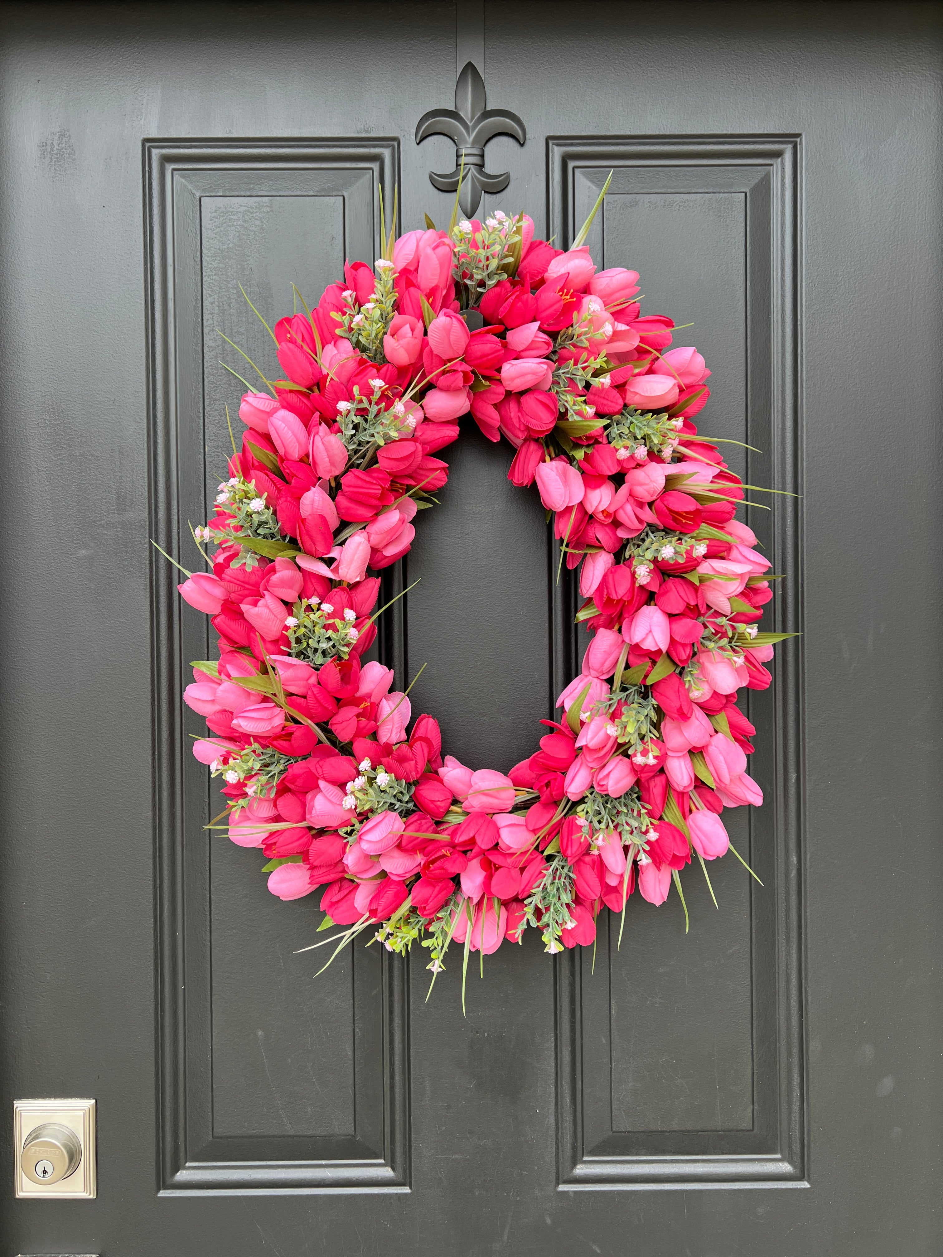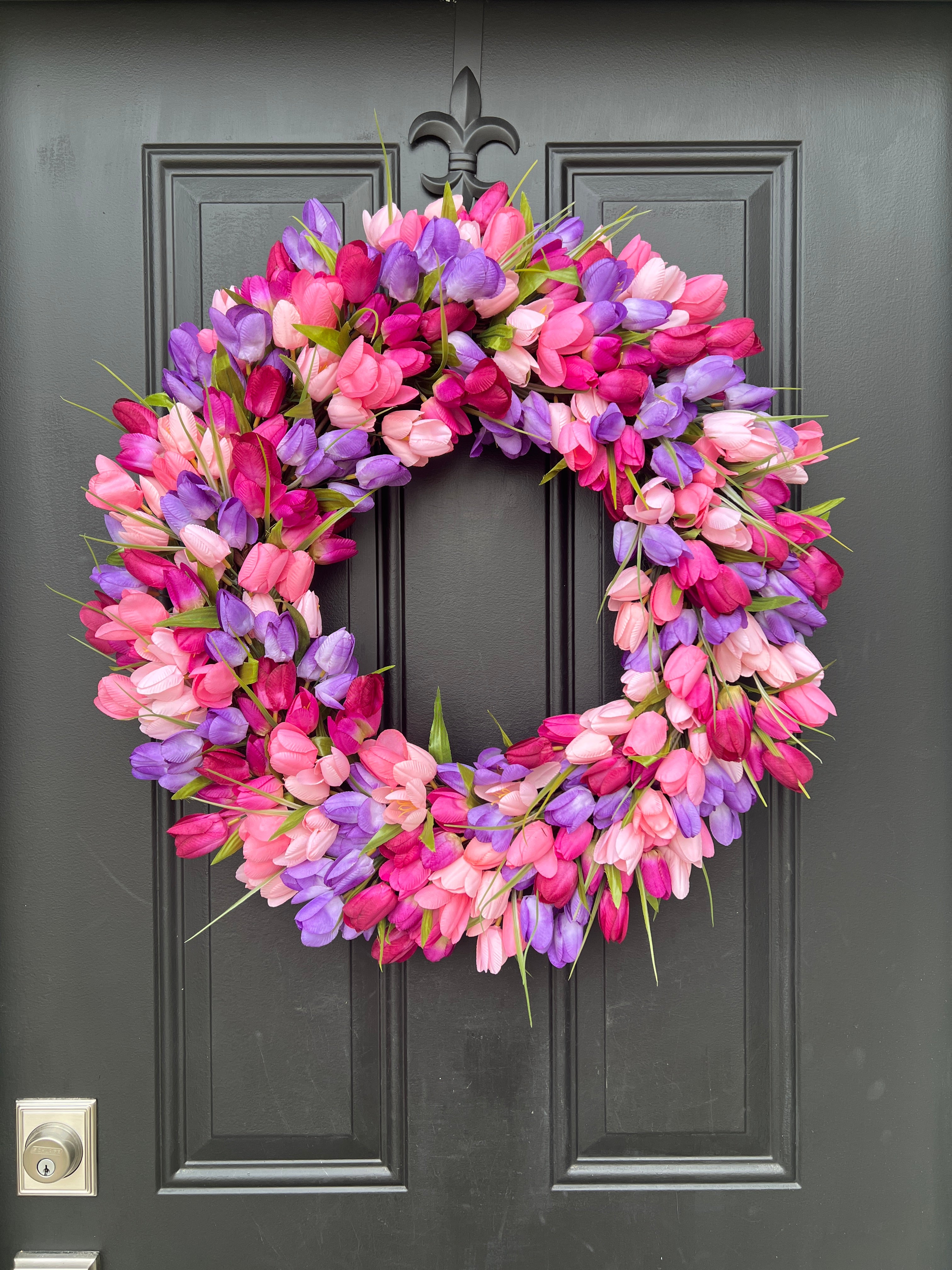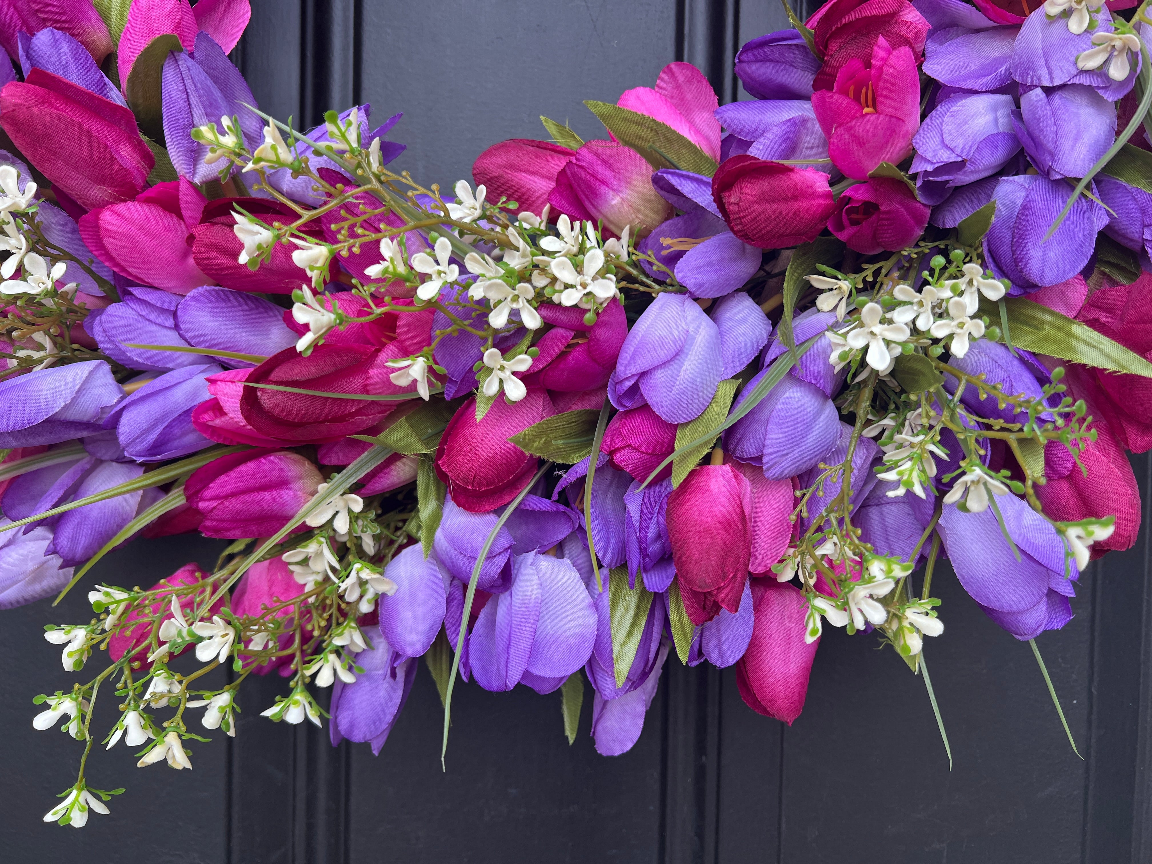 Pink and Purple Tulip Wreath - Spring Tulips Door Wreath