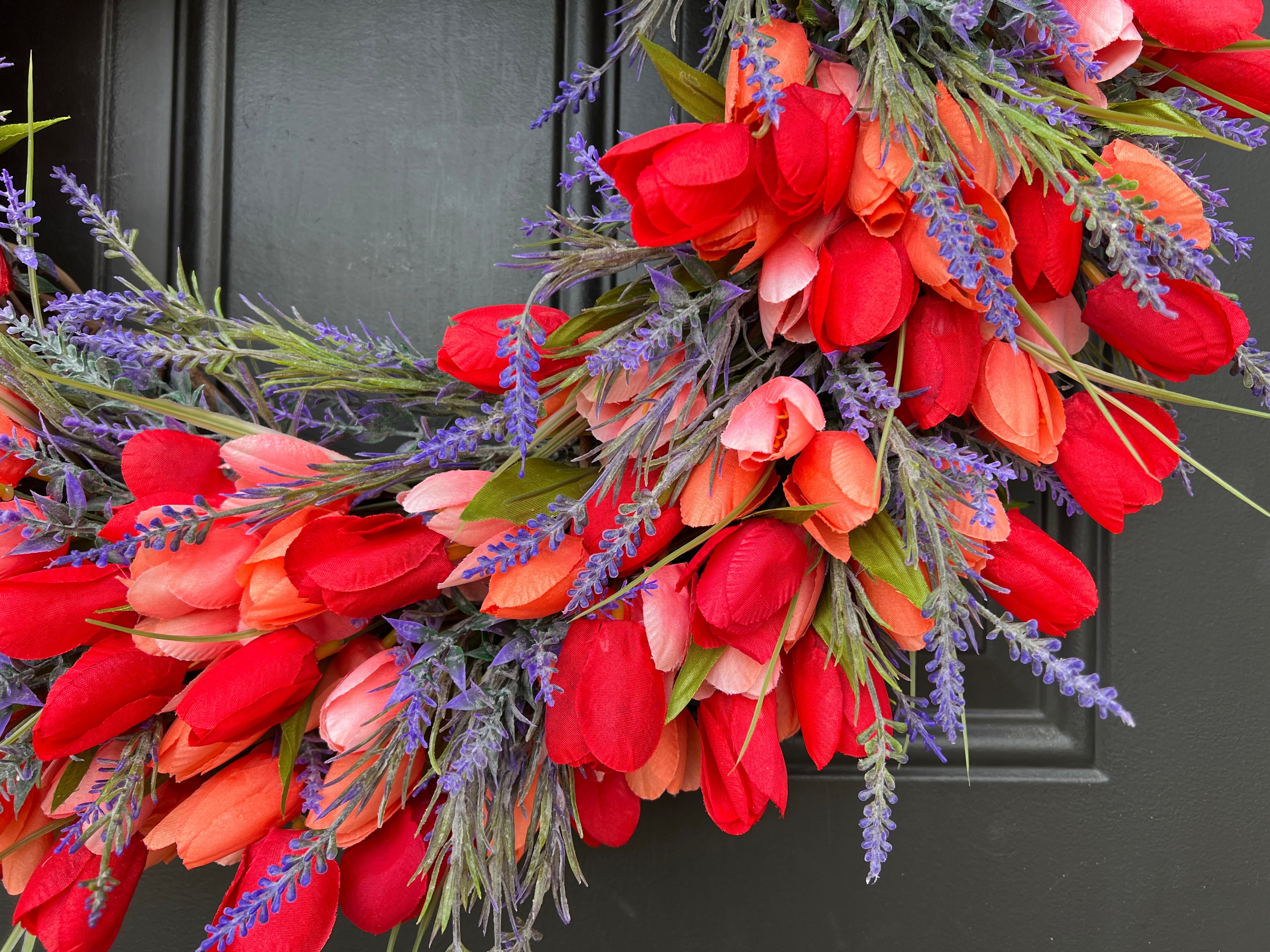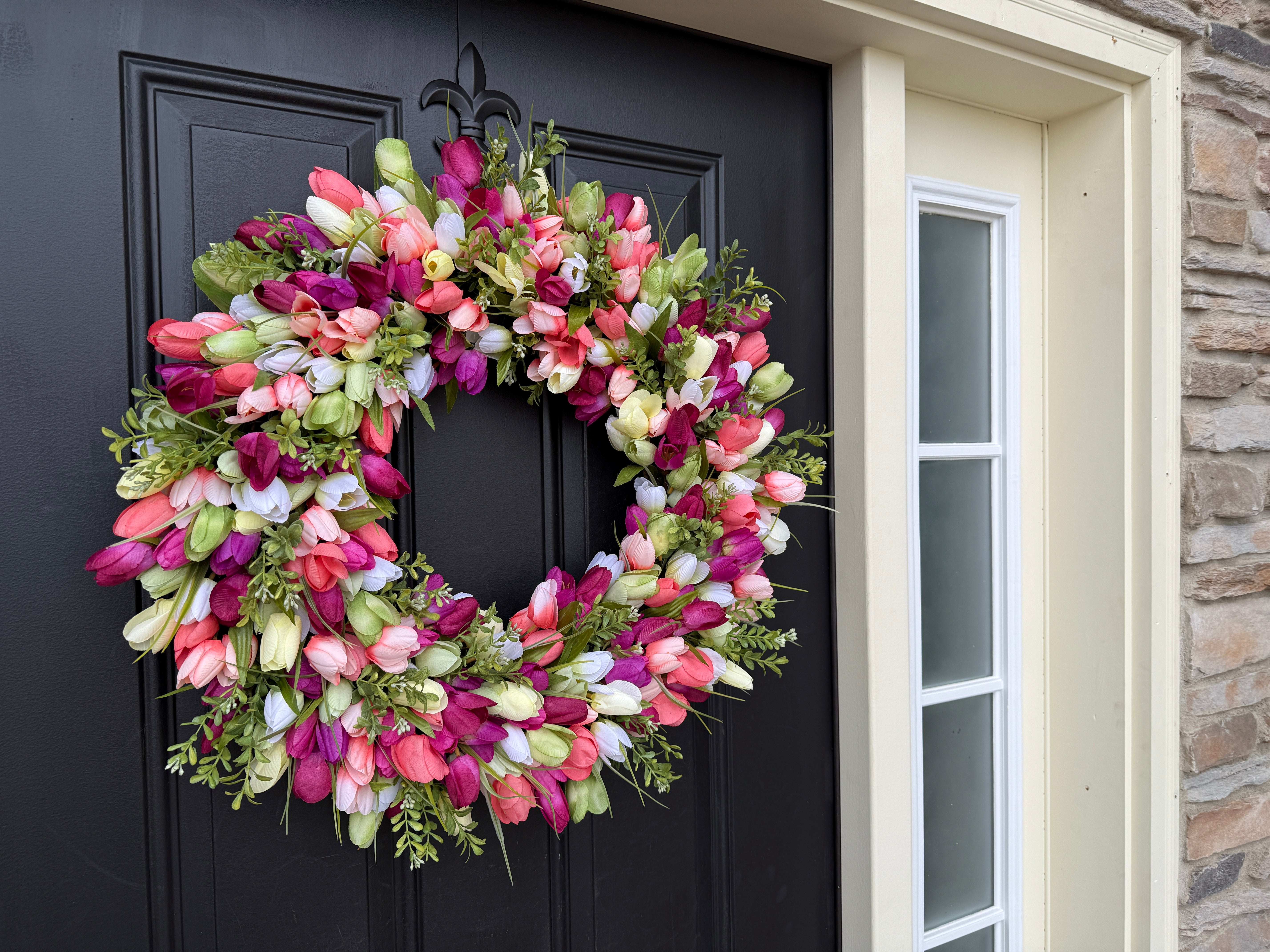 Vibrant Spring Tulip Wreath for Easter, Gifts for Mother's Day