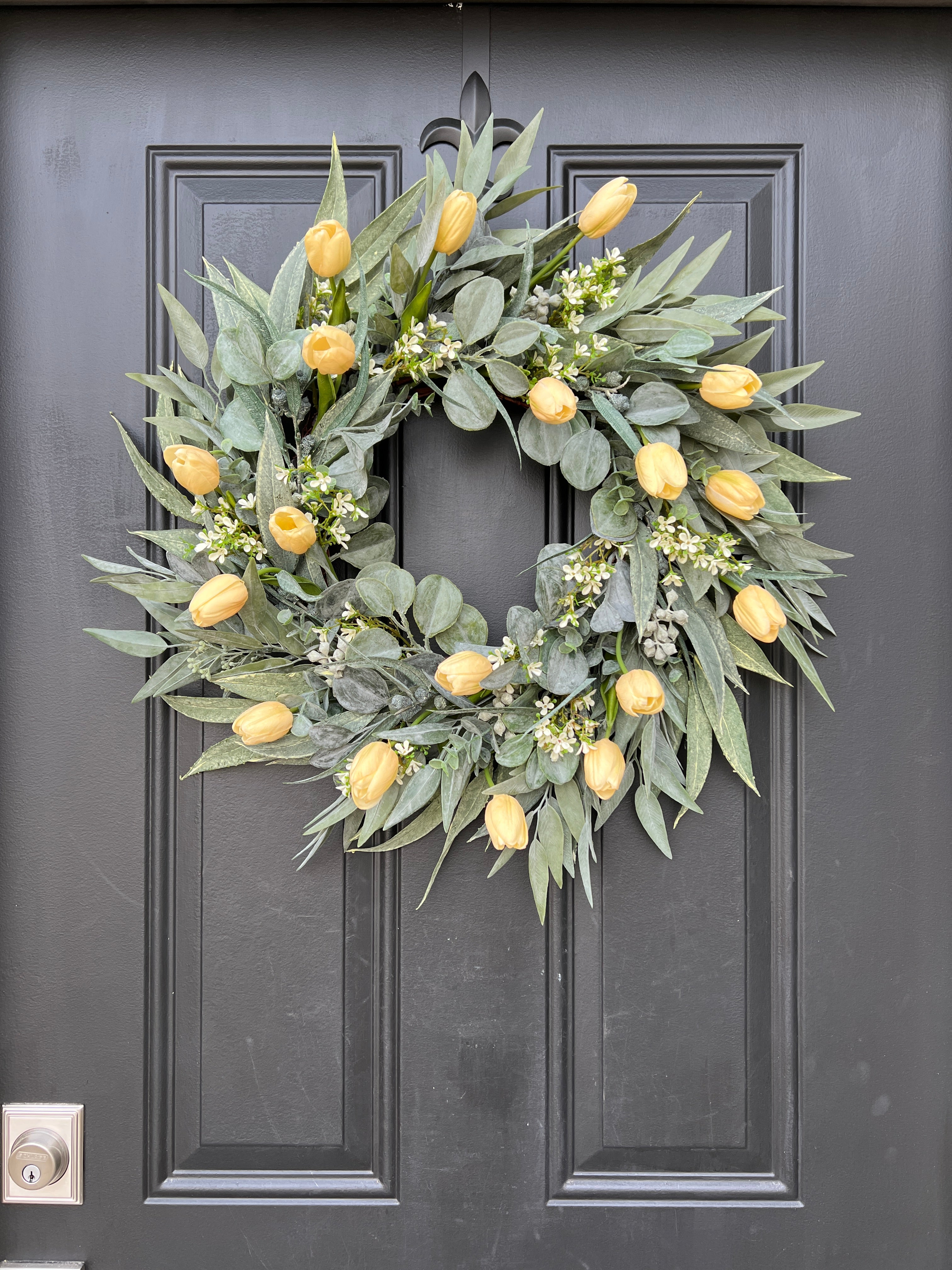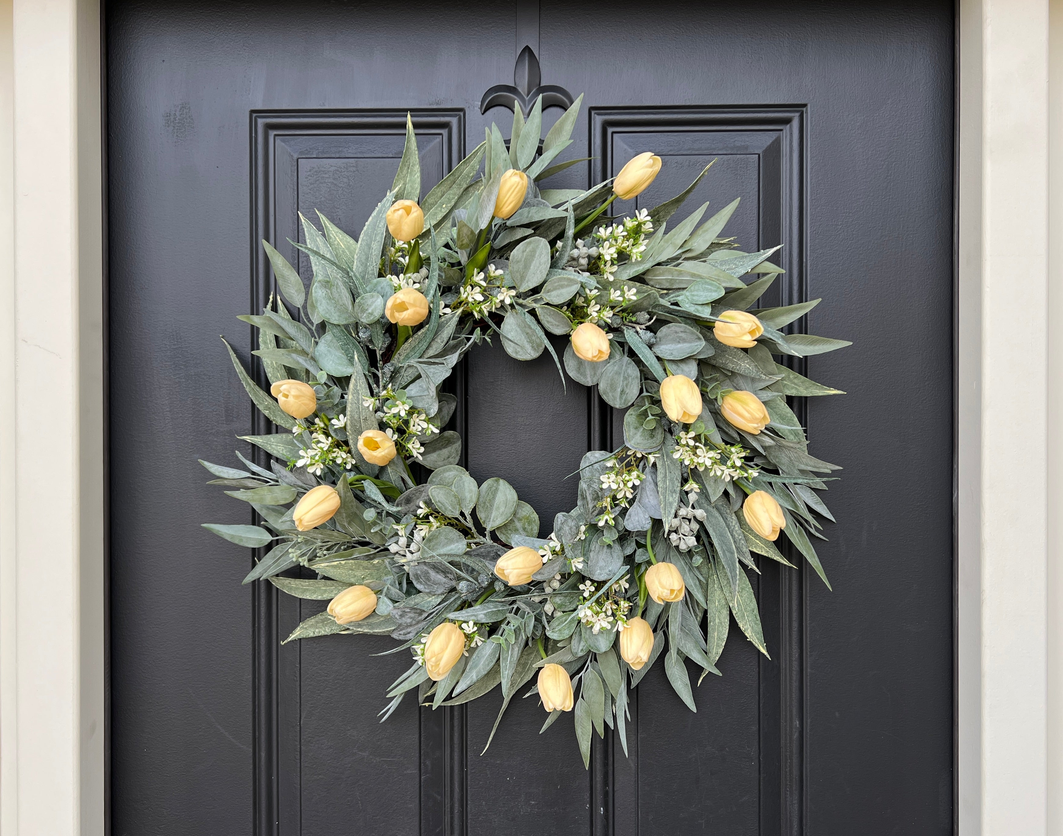 Yellow Tulip Wreath for Spring & Easter, Natural Touch Tulip Door Decor