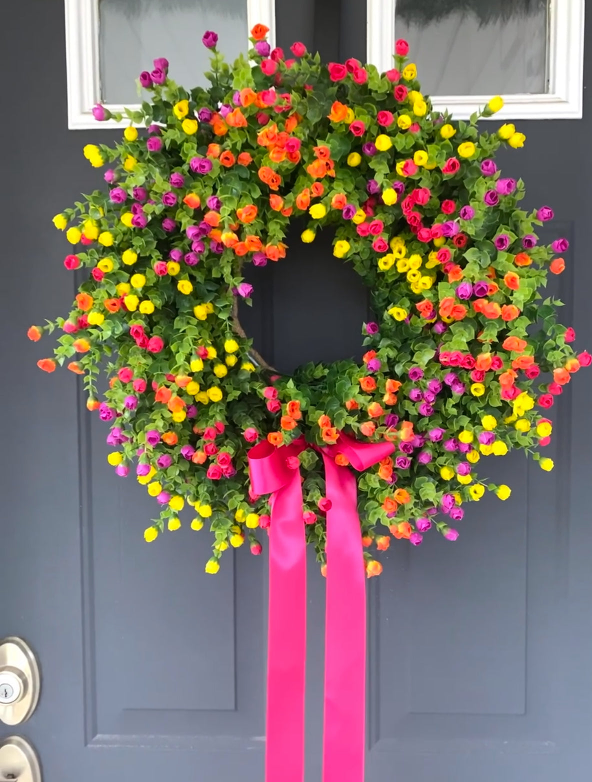 Spring Splendor Wreath - Vibrant Floral Wreath for Front Door