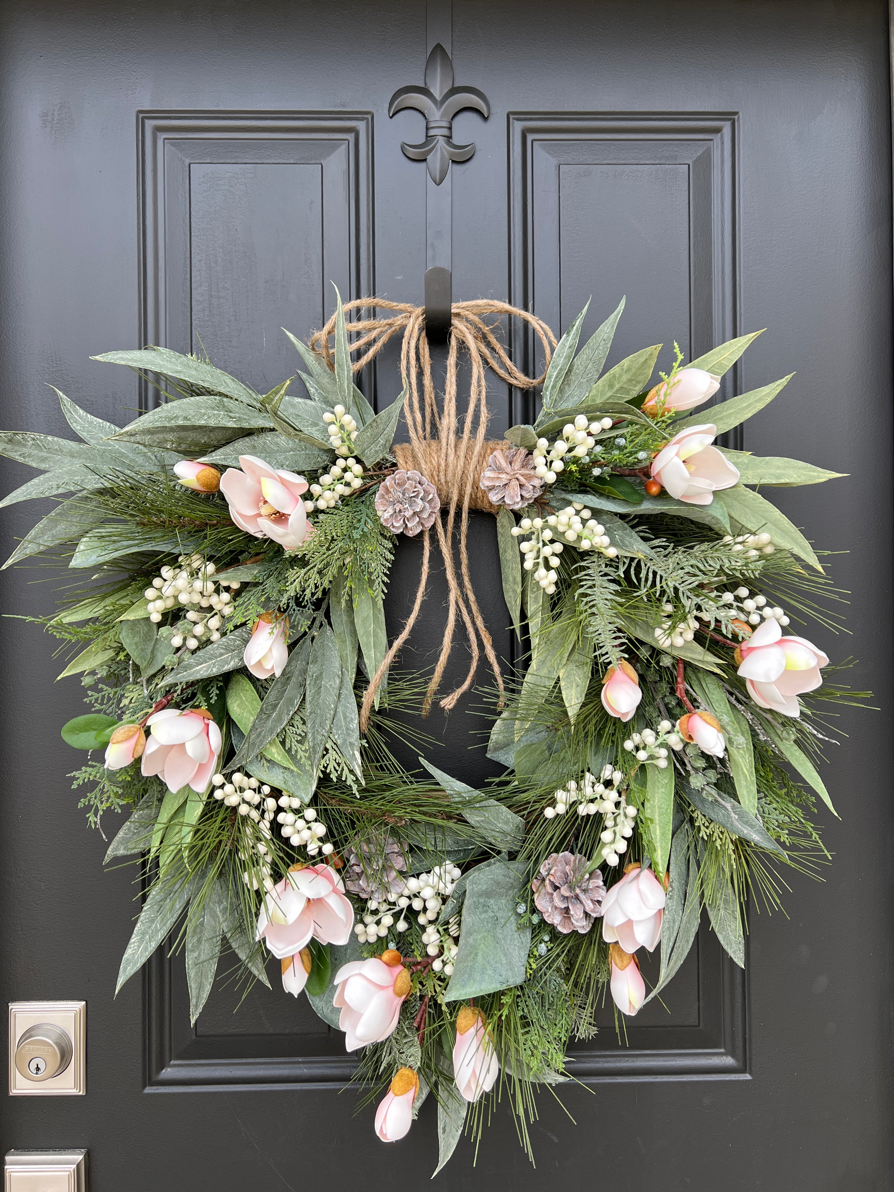 Winter Magnolia Wreath with Pink Magnolia Flowers